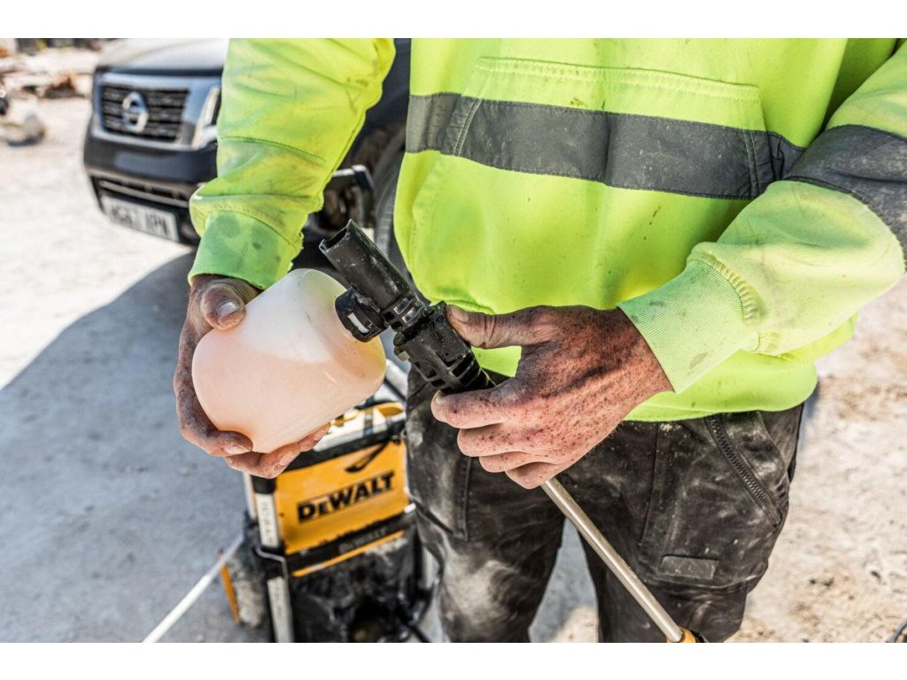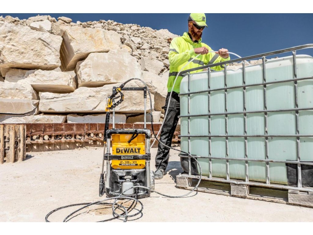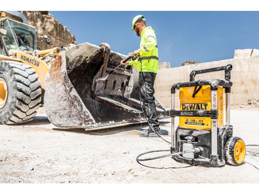 Plne akumulátorové riešenie čistenia – bez nutnosti elektrickej alebo vodovodnej prípojky. Napájanie zaisťujú dva 18 V XR akumulátory. Čistič si vie vziať vodu z vedra alebo suda na dažďovú vodu.