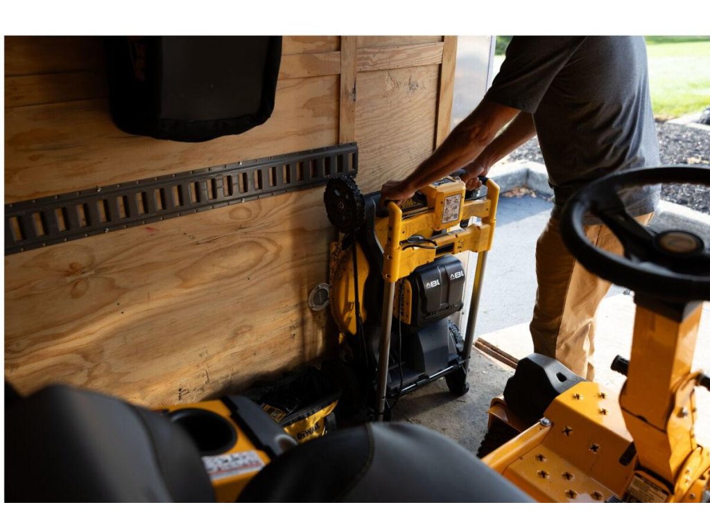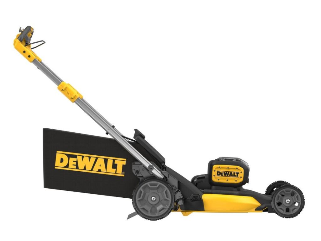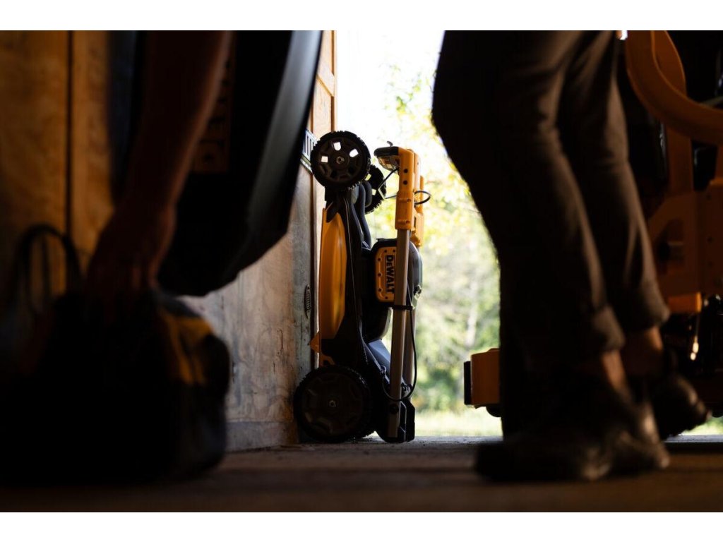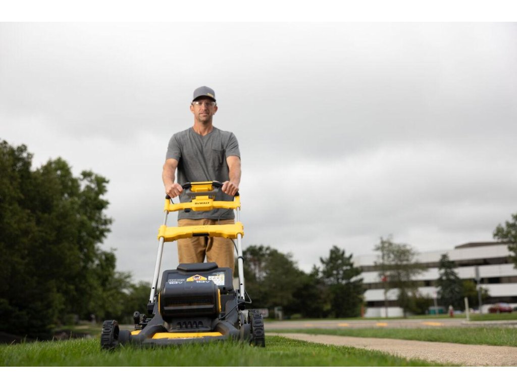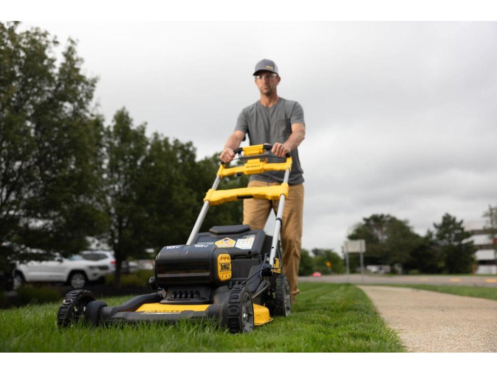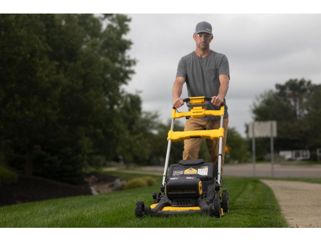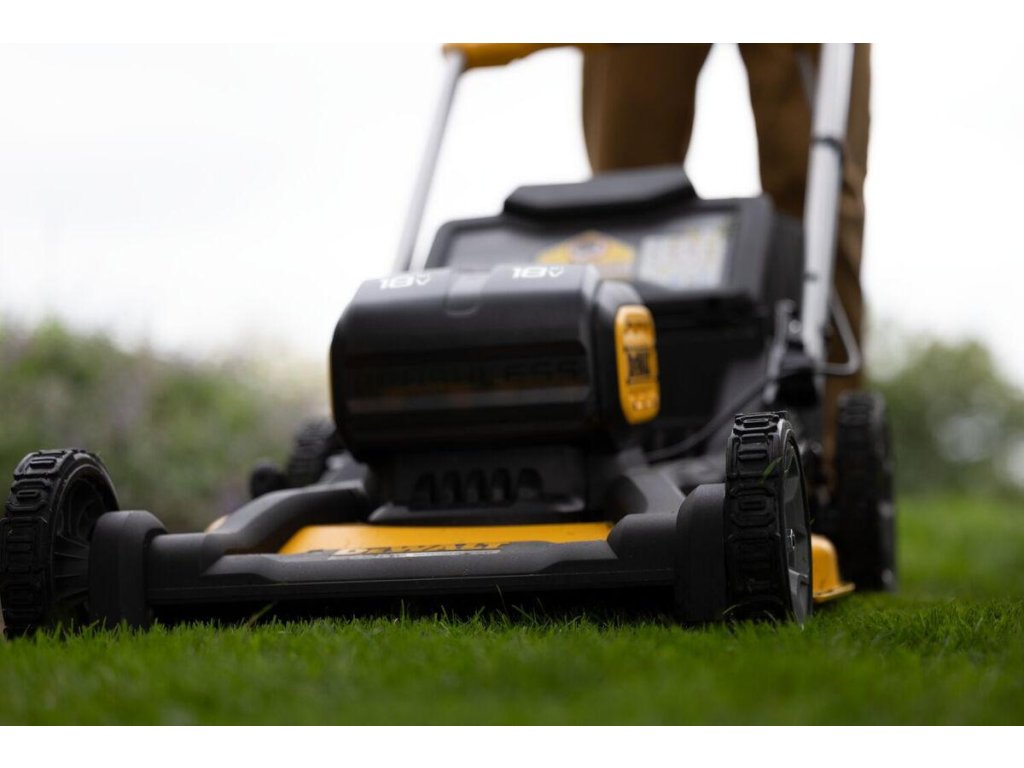 - Kosačka na trávu DEWALT 2x 18V s pojazdom poskytuje až 64 minút doby chodu na jedno nabitie; tento údaj je založený na kosení jednej tretiny výšky trávy s výškovým nastavením 5, za použitia 2 plne nabitých akumulátorov DEWALT 18V XR DCB188 s kapacitou po 8,0 Ah.
