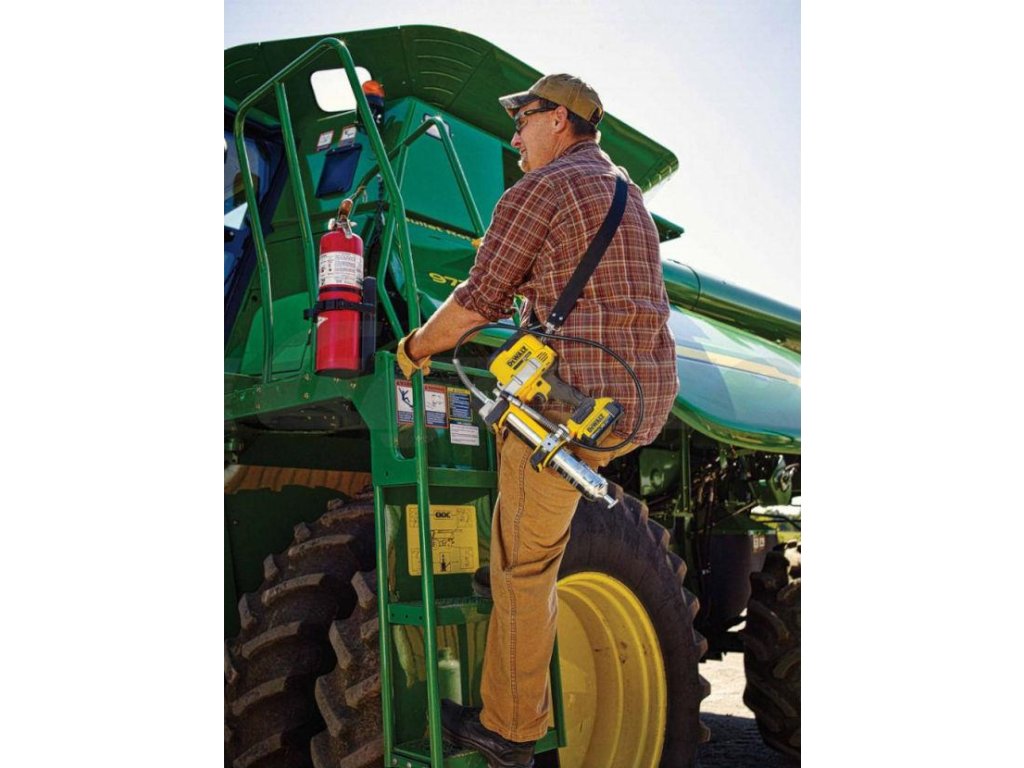 - Náradie sa dodáva s ramenným popruhom. Uľahčuje mazanie, ak musíte na stroj liezť a vystupovať.