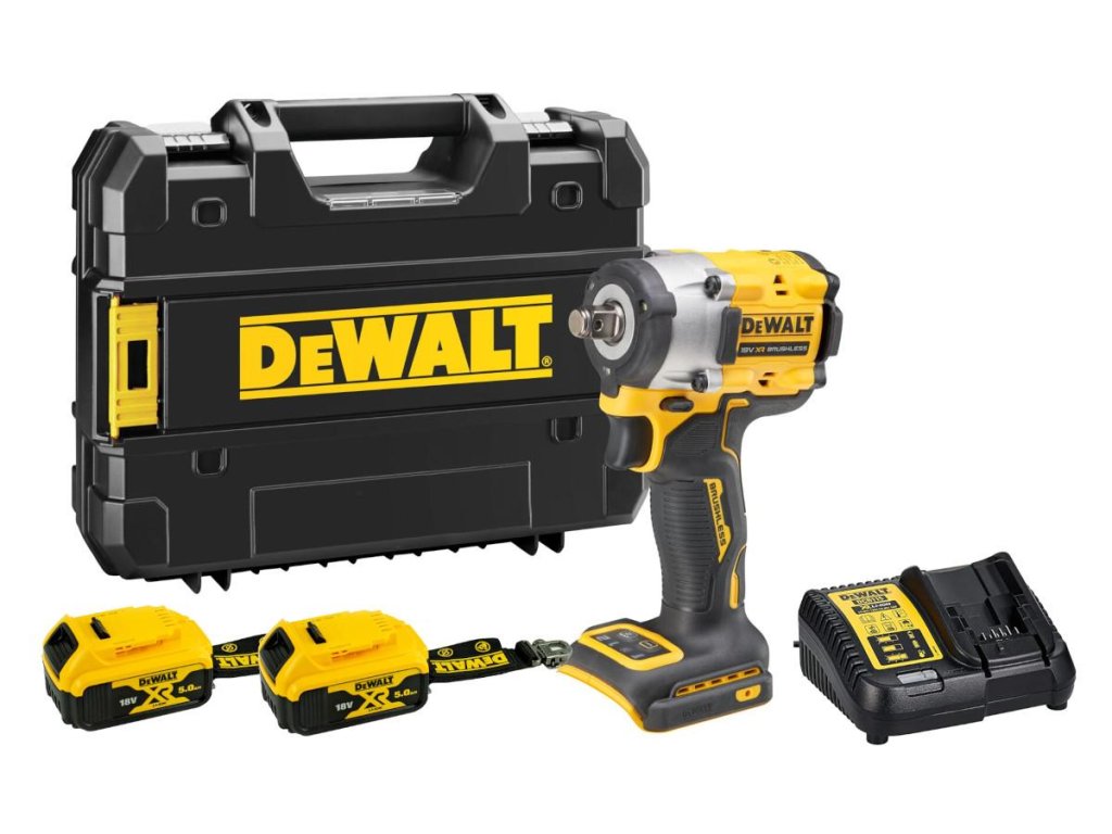 - DCF921P2LRT-QW: 2× akumulátor XR 5,0 Ah LANYARD READY™ a nabíjačka 4,0 A, v kufri TSTAK.