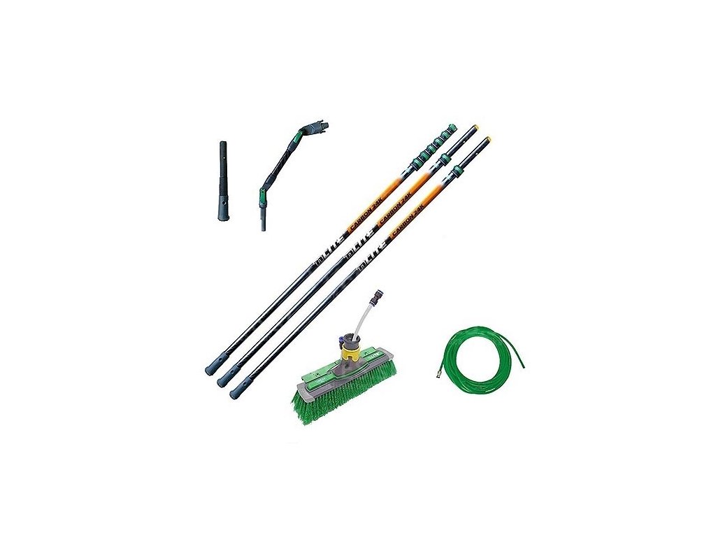 Teleskopy z materiálu “Carbon 24K” je možné použiť do výšky 4. poschodia. Tento kit dosahuje pracovnú výšku až do 4. poschodia vďaka celkovej dĺžke hlavného a predlžovacieho teleskopu 14,70 metra.