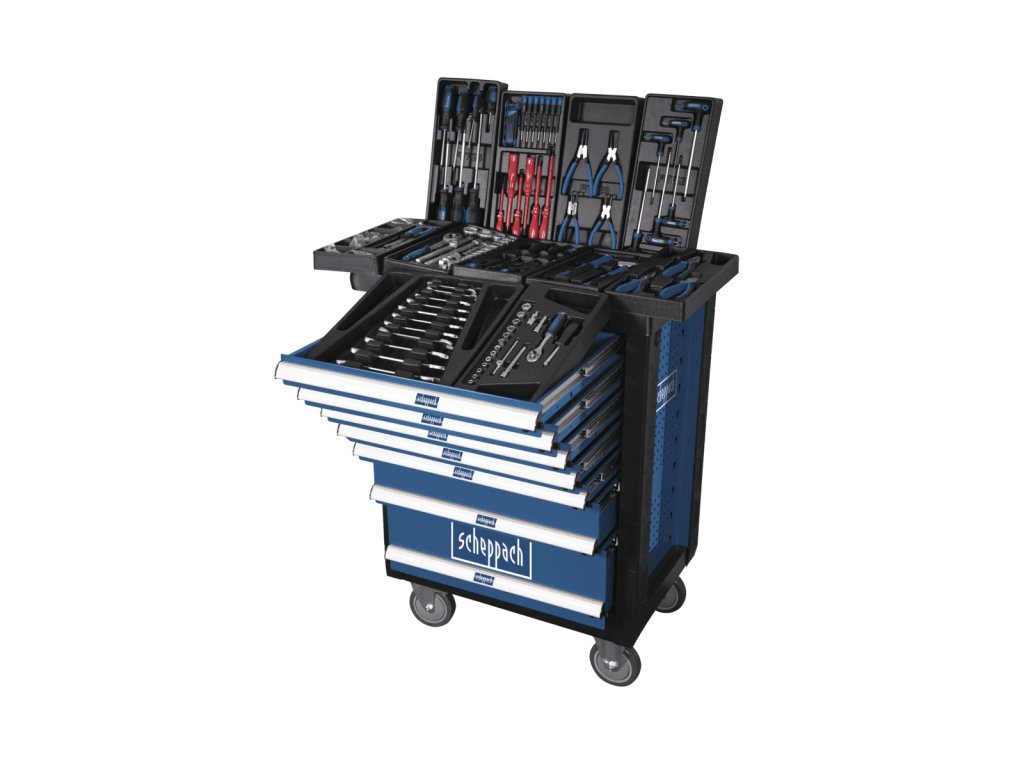 dílenský vozík s nářadím, 7 zásuvek, 263 dílů Scheppach TW 1000 + 9 mm nôž odlamovací, plastový