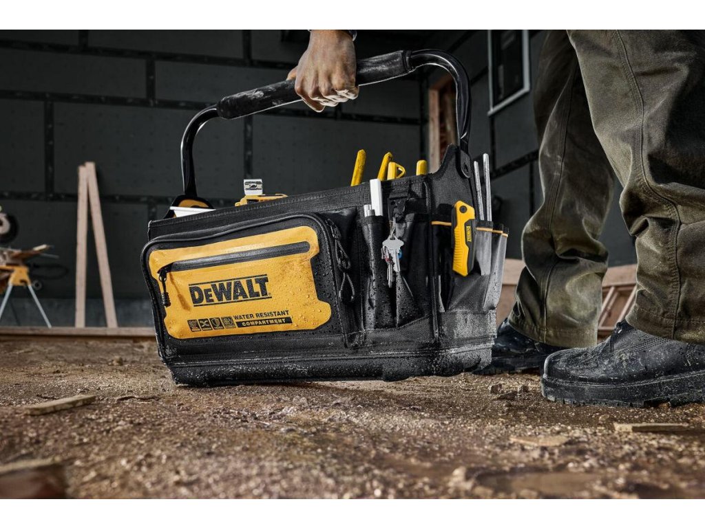 - 20" otvorená taška DEWALT® PRO má odolnú konštrukciu navrhnutú tak, aby vydržala drsné podmienky.