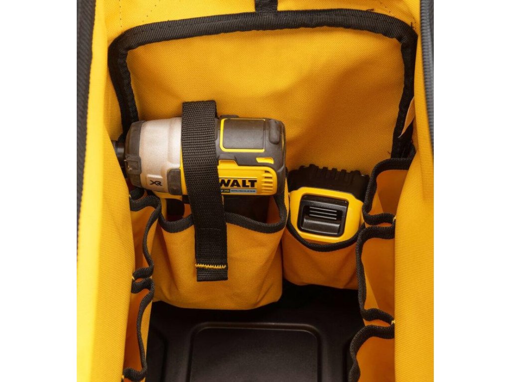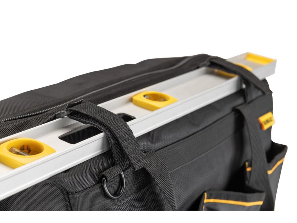 - Zadný popruh umožňuje pripevnenie k zvislej rukoväti tašky DWST60107-1.