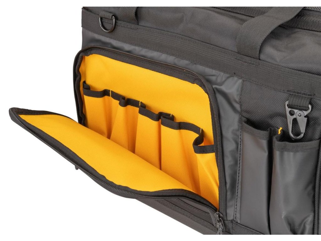 - Taška 20" obsahuje 33 káps na uloženie náradia vrátane špeciálnej kapsy na akumulátorovú vŕtačku a batériu.