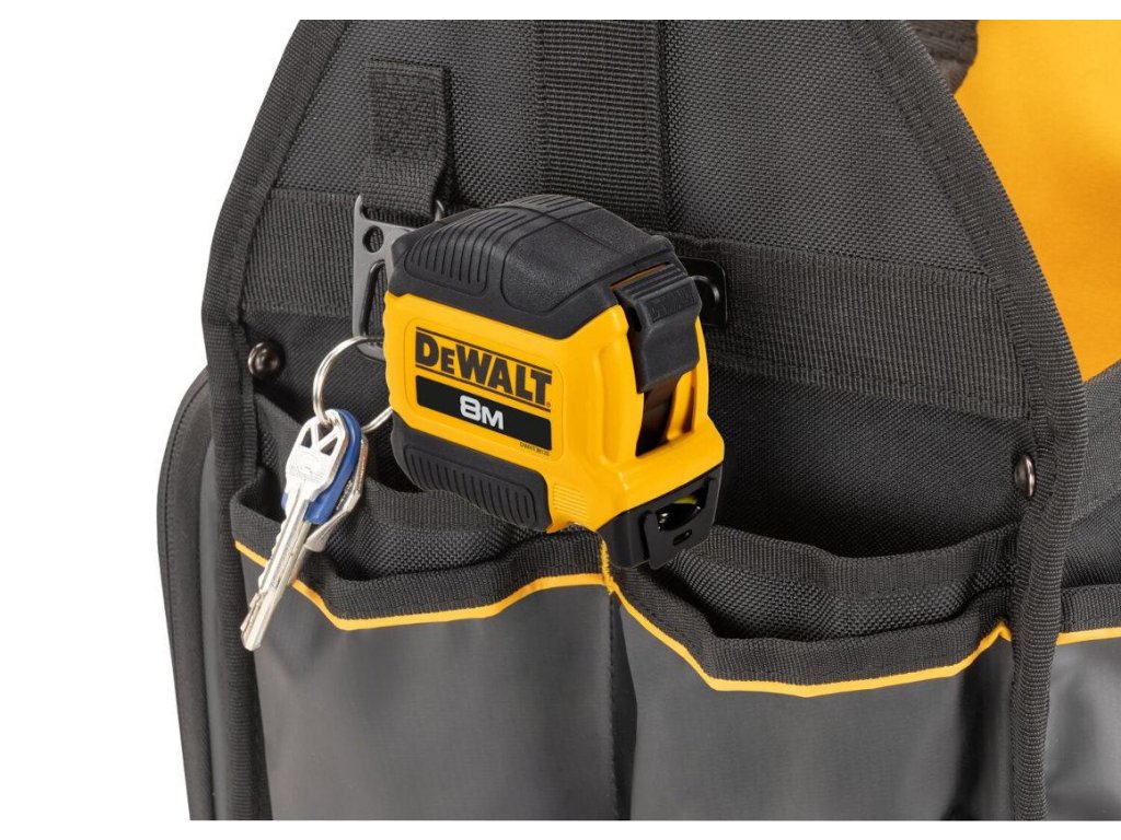 - Elektrikárska taška cez rameno DEWALT® PRO 11” má odolnú konštrukciu navrhnutú tak, aby odolala drsným podmienkam.