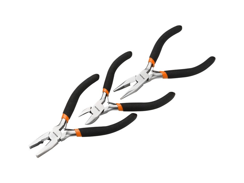 Každý nástroj v sade má dĺžku 115mm, čo zaisťuje skvelú ovládateľnosť a precíznosť pri práci v malých priestoroch. Kliešte sú vyrobené z kvalitnej chróm-vanádiovej (CrV) ocele a sú poniklované pre zvýšenú odolnosť a dlhodobú výdrž.