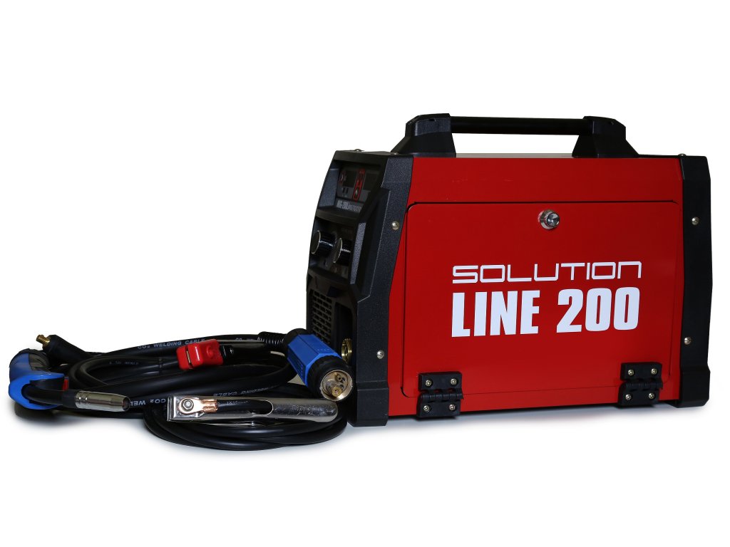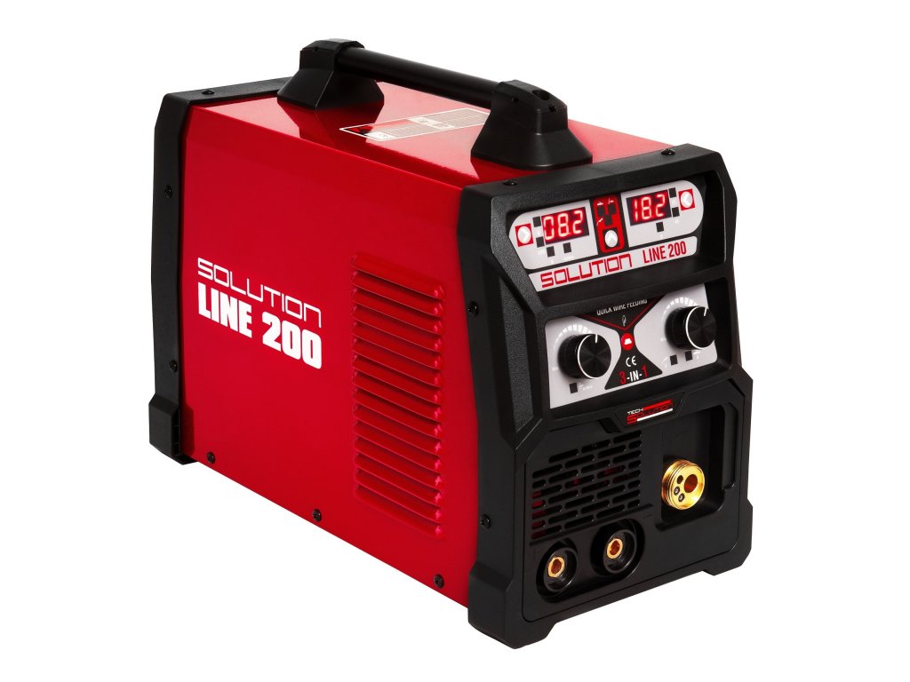 Solution LINE 200 je multifunkčný invertor, ktorý zvára tromi zváracími metódami a to: metódou MMA - elektródou, metódou MIG/MAG- COčkom (s plynom alebo bez plynu - trubičkovým drôtom a metódou TIG - wolfrámovou elektródou. Na prednom digitálnom panely možnosť nastaviť: metódu zvárania, Ampére, Volty, posuv drôtu. Je vybavený eurokoncovkou a kvalitným ventilátorom, ktorý zabezpečuje dobré chladenie stroja. Ani pri veľkom zaťažení sa stroj nepriehrieva. Má kovový podávač drôtu. Možnosť použitia 5kg cievky.