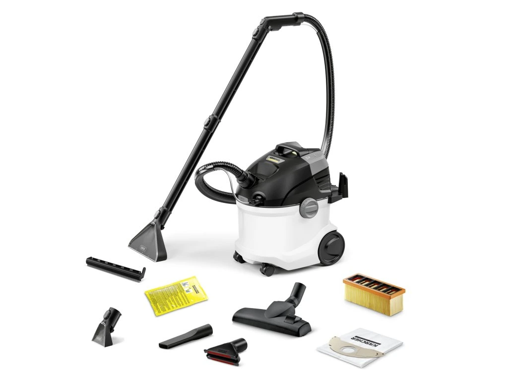 Hĺbkový čistiaci účinok v kombinácii s ergonomickým dizajnom a multifunkčnosťou: tepovač-extraktor SE 5 Upholstery s atraktívnym dizajnom s ťahaním za sebou zaisťuje hygienické čistenie mnohých textilných povrchov, ako sú koberce, čalúnený nábytok, predložky, kobercové schody, matrace, nástenné tapety a autosedačky. Osvedčená technológia tepovača-extraktora od spoločnosti Kärcher prináša najlepšie výsledky čistenia: čistá voda z vodovodu a čistič kobercov Kärcher RM 519 sa pod tlakom vstrekujú hlboko do textilných vlákien a potom sa spolu s uvoľnenými nečistotami vysávajú späť – ideálne pre rodiny, alergikov a domácnosti s domácimi zvieratami. SE 5 je multifunkčný 3-v-1 produkt, ktorý sa vďaka rozsiahlemu príslušenstvu dá použiť aj ako plnohodnotný mokro-suchý vysávač. Ďalšie vlastnosti vybavenia: 2-nádržový systém s odnímateľnou nádržou na čistú a špinavú vodu, ergonomická rukoväť pre jednoduchú prepravu a praktické uloženie príslušenstva na zariadení. Po použití sa zariadenie ľahko čistí a zaisťuje dlhú životnosť.