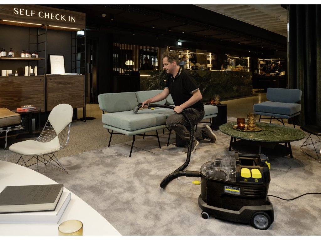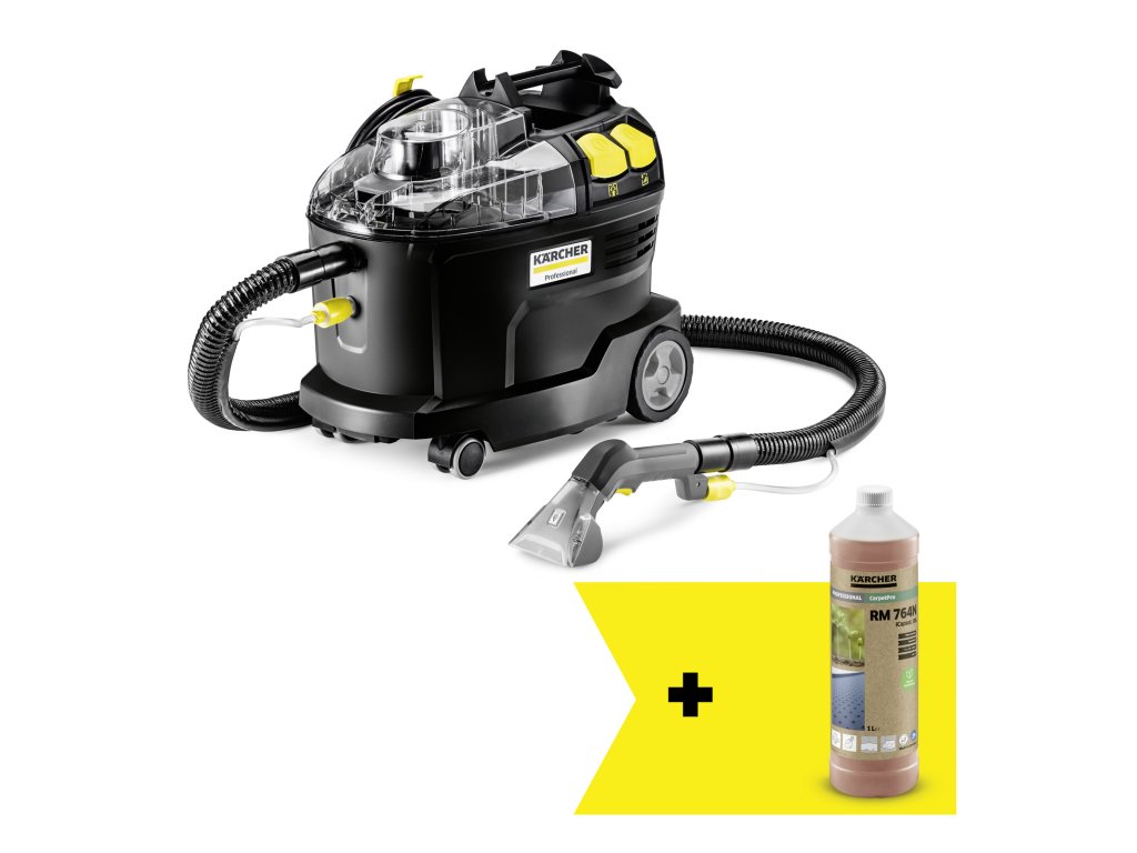 Limitovaná edícia čierneho rozprašovacieho extraktora Puzzi 8/1 Go!Further, vyrobeného zo 44 percent recyklovaného plastu¹⁾, sa dodáva s exkluzívnym príslušenstvom a 1-litrovou fľašou čistiaceho prostriedku RM 764N OA. Rozprašovací extraktor poskytuje hygienické výsledky čistenia pri čistení čalúnenia a odstraňovaní škvŕn z textilných povrchov a presvedčí svojou vysokou nákladovou efektívnosťou. Dôkladná čistota sa dosahuje nastreknutím čistiaceho roztoku hlboko do vlákien a následným vysatím uvoľnených nečistôt. Účinný sací výkon umožňuje aj rýchle schnutie a rýchlu opätovnú prístupnosť. Rozprašovací extraktor tak spĺňa vysoké nároky profesionálov v oblasti upratovania v hotelierstve a gastronómii, ako aj pri čistení interiérov vozidiel. Štandardná, extra krátka hubica na čalúnenie uľahčuje čistenie aj úzkych priestorov. Nízka hmotnosť v kombinácii s ergonomickou rukoväťou umožňuje bezproblémové prenášanie iba jednou rukou. Priehľadný kryt stroja a ručná hubica poskytujú jasný prehľad o znečistenej vode.