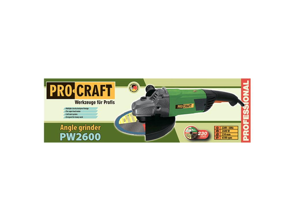 Uhlová brúska PROCRAFT PW2600, 230 mm | PW2600 + 9 mm nôž odlamovací, plastový