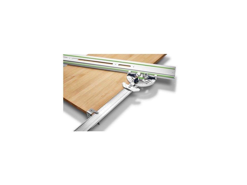 Uhlový doraz pre vodiace lišty – na presné a rýchle šikmé uhlové rezy. Uhly v rozsahu −60° až +60° sa dajú nastaviť s vysokou presnosťou a možnosťou presného opakovania. Uhlový doraz tak poskytuje veľký rozsah použitia a maximálnu flexibilitu. Vďaka rýchloupínacej páke je uhlový doraz intuitívne a obratom ruky umiestnený na vodiacej lište a v kombinácii s ručnou okružnou pílou a rezacím a pracovným stolom sa premení na mobilnú veľkoplošnú pílu. Systém skoncipovaný na docielenie presných, vedených šikmých uhlových rezov.