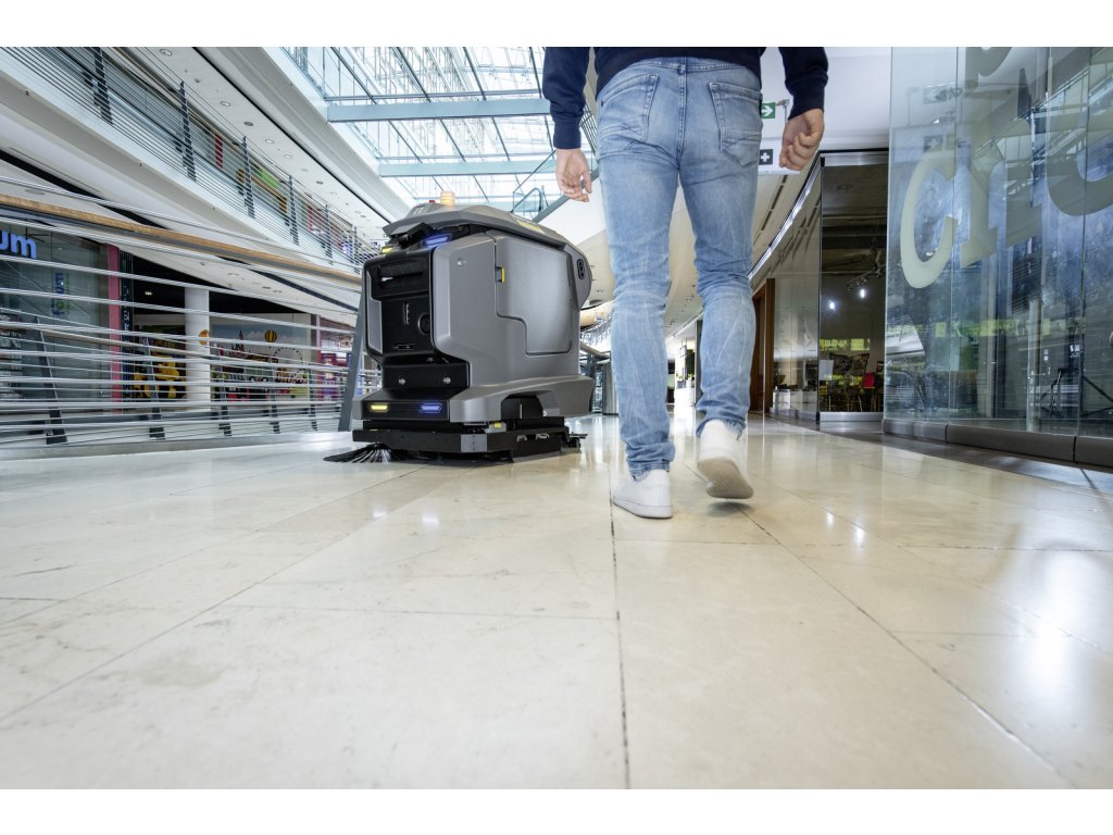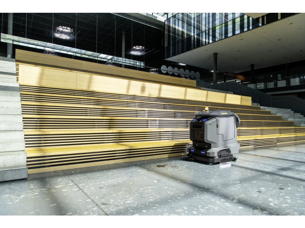 Autonómny podlahový umývací automat Kärcher KIRA B 50 je praktickým doplnkom každého upratovacieho tímu. Inteligentne, autonómne a s funkčnosťou umývacieho automatu zvládne čistenie stredných až veľkých plôch efektívne a s rovnomernými výsledkami čistenia, čím odbremeňuje čistiaci tím, ktorý sa namiesto toho môže sústrediť na náročnejšie úlohy. Intuitívne navádzanie používateľa s veľkým dotykovým displejom umožňuje rýchle nastavenie robota bez potreby odborných znalostí. Voliteľná dokovacia stanica umožňuje plne samostatnú prácu vrátane dopĺňania čerstvej vody, vyprázdňovania špinavej vody, oplachovania nádrže a nabíjania lítium-iónovej batérie s dlhou výdržou. Hlava valcovej kefy vykonáva predbežné zametanie a čistenie v jednom pracovnom kroku, zatiaľ čo integrovaná bočná kefa eliminuje potrebu ručného čistenia okrajov. Vysokovýkonné senzory a softvér zaisťujú spoľahlivosť navigácie, bezpečné predchádzanie kolíziám a prekážkam. Na účely dokumentácie a monitorovania odosiela KIRA B 50 stavové správy na mobilné zariadenia a vytvára podrobné správy o čistení na príslušnom webovom portáli.
