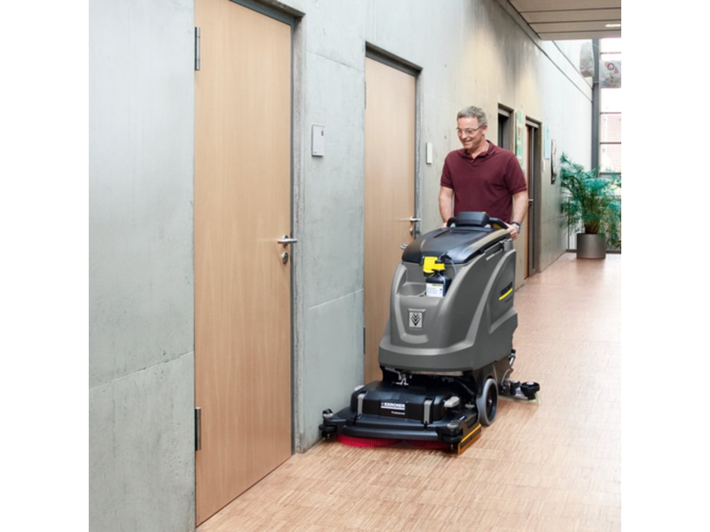 Ručne vedený podlahový umývací stroj B 60 W Bp s pohonom a systémom kľúčov KIK ponúka pohodlie, ako aj jednoduchú a bezpečnú manipuláciu. So systémom kľúčov KIK sú prístupové práva pridelené na ochranu pred nesprávnou prevádzkou. S kotúčovou kefovou hlavou D 65 (pracovná šírka 65 cm) a rýchlosťou kefy až 180 ot./min. je stroj ideálny pre neštruktúrované podlahy s plochou až 2500 metrov štvorcových. Kontaktný tlak kefy je nastaviteľný a hlava a kefy sa rýchlo namontujú a vymenia. Režim eco!efficiency výrazne predlžuje výdrž batérie a systém oplachovania nádrže zjednodušuje čistenie nádrže na špinavú vodu po vyčistení podlahy. Okrem toho je k dispozícii funkcia automatického plnenia pre jednoduché a časovo úsporné plnenie nádrže na čistú vodu a stierka v tvare V s pracovnou šírkou 900 milimetrov pre odsávanie znečistenej vody bez zvyškov aj v ohyboch.Dodatočné parametre