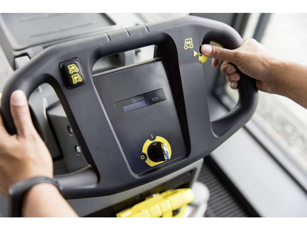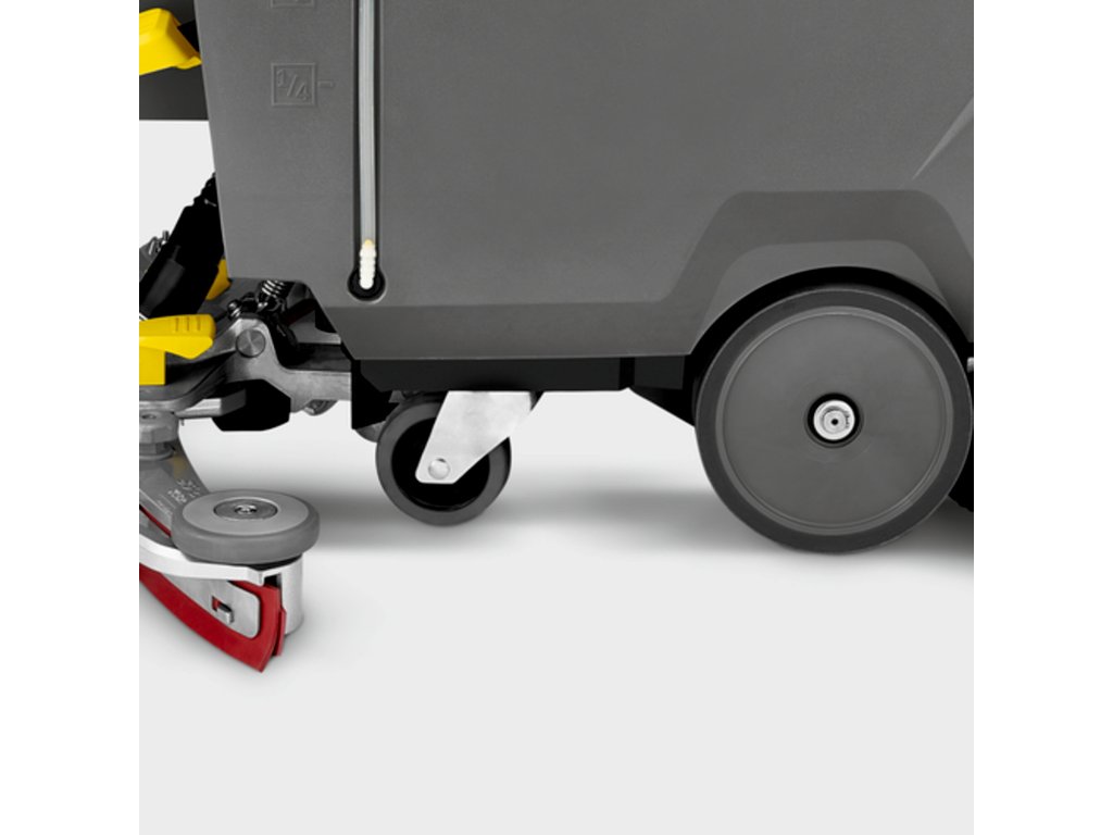 Náš ručne vedený umývací stroj BD 50/55 W Classic Bp napájaný z batérie zaujme robustnými komponentmi s dlhou životnosťou, ako je hlava kotúčovej kefky a stierka (850 mm) vyrobená z vysoko kvalitného hliníka. 27 kilogramový kontaktný tlak kefy, 55-litrové nádrže a pracovná šírka 51 centimetrov zaručujú prvotriedne výsledky až na 2000 m² za hodinu pri údržbovom čistení, napr. vo verejných budovách, maloobchode, zdravotníctve alebo priemysle. Veľmi kompaktná konštrukcia, komfortný systém všetkých kolies a podpora integrovaného trakčného pohonu umožňujú vynikajúci prehľad o čistených oblastiach, veľmi dobrú manévrovateľnosť a dlhé aplikácie bez únavy. To je dôvod, prečo naši dodávatelia stavebných služieb oceňujú užívateľsky prívetivý a všestranný BD 50/55 W Classic Bp pri každodennom čistení.Dodatočné parametre