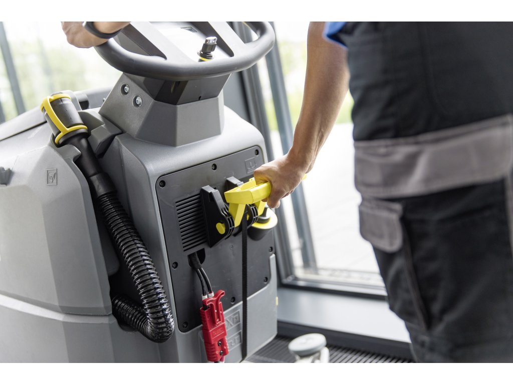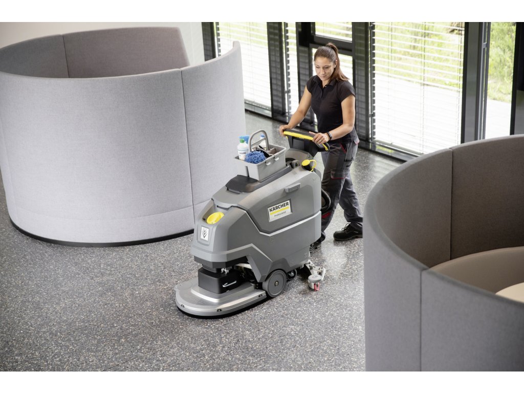 S pracovnou šírkou 51 centimetrov a veľkými 55 l nádržami na čistú a špinavú vodu vyčistí všestranný ručne vedený automat BD 50/55 W Bp Pack s batériovým napájaním až 2000 m² za hodinu. Vďaka svojej kompaktnej konštrukcii presviedča jasným usporiadaním a vďaka integrovanému pohonu trakcie, ako aj komfortnému štvorkolesovému systému aj jednoduchou manévrovateľnosťou bez námahy. 850 mm dlhá stierka a hlava kotúčovej kefy s kontaktným tlakom kefy 27 kilogramov sú vyrobené z vysoko kvalitného, robustného hliníka s dlhou životnosťou a zaisťujú vynikajúce výsledky čistenia. Štandardná externá nabíjačka batérií umožňuje nabíjanie výkonnej a bezúdržbovej batérie AGM s kapacitou 115 Ah v každodennom pracovnom živote pre dlhé aplikácie.Dodatočné parametre