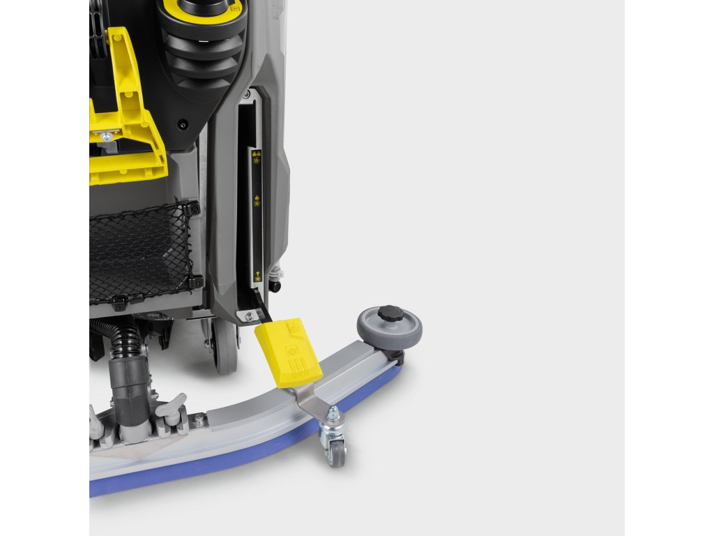 Pri našom ručne vedenom umývacom automate s chodiacou obsluhou BD 80/100 W Bp Pack Classic je výkonná batéria už zabudovaná v stroji a príslušná nabíjačka patrí tiež do štandardnej výbavy. Aby zakaždým zvládli aj to najťažšie pracovné nasadenie, sú obzvlášť namáhané komponenty, ako sacia lišta a kotúčová hlava, vyrobené z masívnych tlakových hliníkových odliatkov. Výkonný trakčný pohon, ktorý bez námahy zvládne aj stúpania, veľmi dobrý prehľad ako aj jednoduchá obsluha prispievajú k vysokému komfortu tohto stroja pre používateľa. S pracovnou šírkou 80 centimetrov, objemom nádrže 100 litrov a plynulo až do 5 km/h nastaviteľnou prepravnou a čistiacou rýchlosťou je možný plošný výkon až 4800 m² za hodinu. Ak je pri tom potrebné odstrániť intenzívne znečistenie, môže sa prítlak kotúčových kief manuálne prispôsobiť zo 40 na 68 kilogramov. Prevážanie prídavných čistiacich pomôcok na stroji umožňuje integrovaný adaptér Home Base.Dodatočné parametre