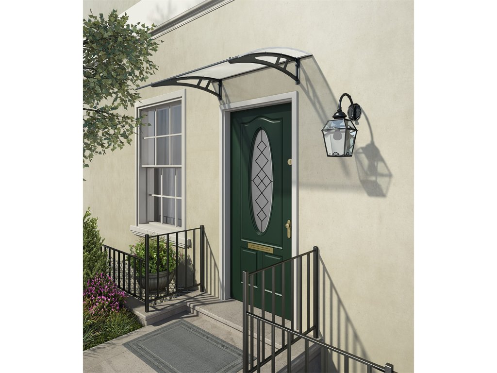 Elegantní přístřešek nad vchodové dveře Praktická a elegantní vchodová stříška s velmi snadnou instalací a akční cenou Silná a odolná konstrukce od předního světového výrobce zaručuje dlouhou životnost Ochrání váš vchod před deštěm, kroupami i sněhem Prakticky nerozbitný panel z dvoukomůrkového polykarbonátu se 100% UV ochranou a tloušťkou 10 mm Skvělá kvalita polykarbonátu Palram zaručuje, že plast nebude s postupujícím věkem žloutnout Přední a zadní kryty hran z hliníku a boční z polykarbonátu pro dokonalou ochranu panelu Podpěry z vysoce nárazuvzdorného a odolného polymeru Velmi jednoduchá instalace, spojovací materiál pro instalaci součástí dodávky Stříška nevyžaduje údržbuDodatočné parametre