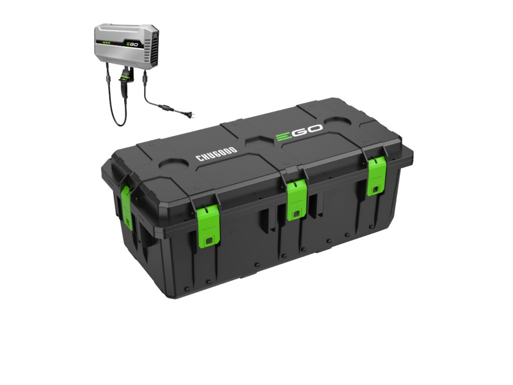 Nabíjací kufor CHU6000 je revolučným riešením pre správu energie pri náročných celodenných prácach. Tento multinabíjací box umožňuje nielen bezpečne uskladniť a transportovať, ale predovšetkým súčasne nabíjať až šesť akýchkoľvek 56 V batérií EGO naraz. Môžete ho používať s nabíjačkou CHV1600E (dostupný je aj variant SADA s touto nabíjačkou) ale taktiež aj s klasickými nabíjačkami napr.CH5500E alebo CH7000E-T cez pripjací kábel ACA1000.
