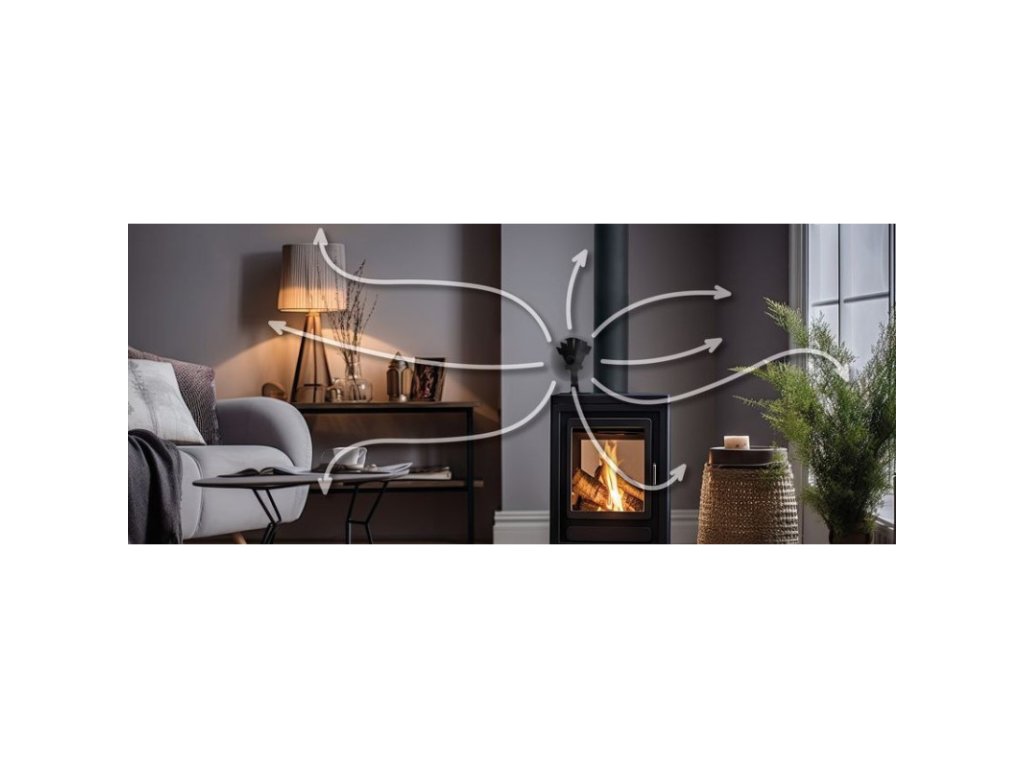 Ventilátor je poháňaný výlučne teplom z pece, bez dodávky elektrického prúdu, zvyšuje účinnosť a šetrí energiu. Zabezpečuje efektívnejšiu distribúciu tepla a väčší komfort v miestnosti, a to takmer nehlučne a úplne zadarmo. Viac tepla pri rovnakom vykurovacom výkone. Vlastný pohon vďaka využitiu termoelektrickej energie (Seebeckov efekt) premieňa teplo na elektrinu. Ideálne sa hodí pre všetky kovové pece vykurované drevom alebo peletami s vodorovným povrchom. Samoregulačná rýchlosť otáčania, v závislosti od teploty, mimoriadne tichá prevádzka, magnetický teplomer je súčasťou balenia.