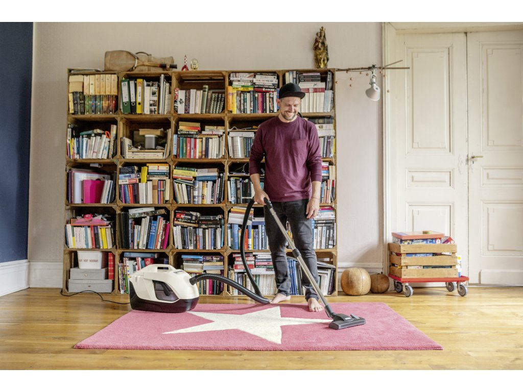 Vďaka energeticky úspornému motoru má vysávač príkon len 650 W, no sacím výkonom sa vyrovná starším 1400 W modelom. Ponúka komfortné automatické navíjanie kábla, parkovaciu polohu pre prestávky v práci a praktický odkladací priestor na príslušenstvo priamo na tele stroja. Po vysávaní stačí špinavú vodu jednoducho vyliať do toalety – žiadny kontakt s prachom ako pri vyklepávaní vreciek.