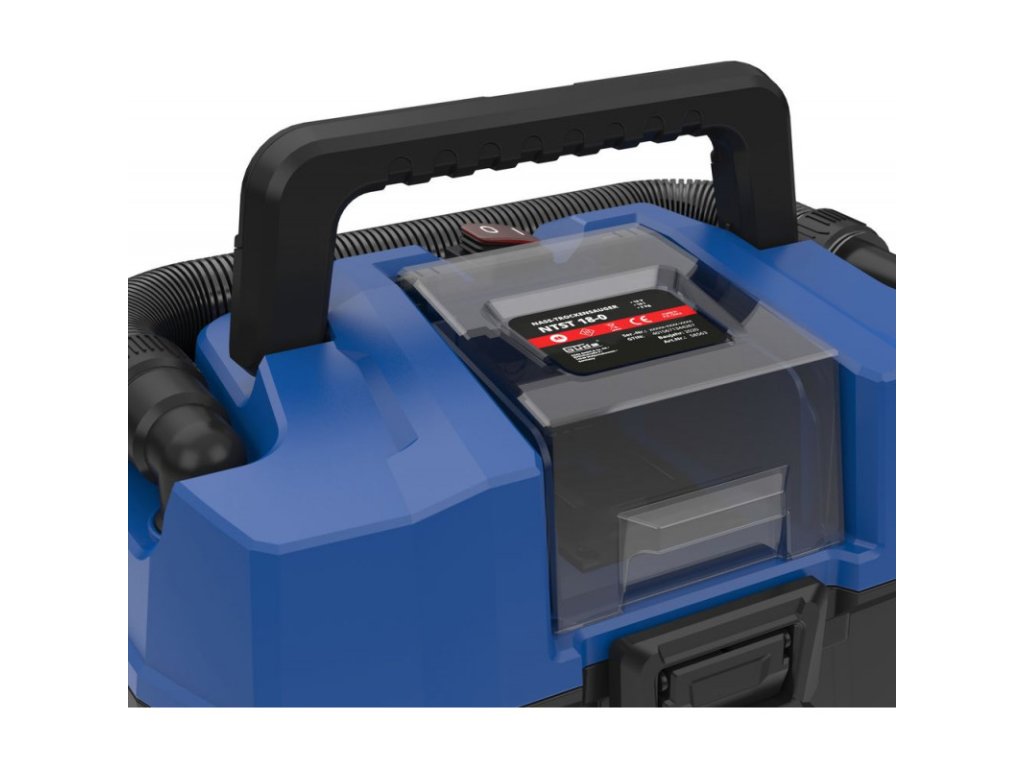 Výkonný akumulátorový vysávač na vysávanie na mokro aj na sucho zo série akumulátorových systémov 18V E3 pre mobilné použitie okolo domu a v záhrade, s funkciou vyfukovania. Nádoba s kapacitou 10 l, hadica s možnosťou vytiahnutia na dĺžku 1,7 m, 4 riadiace kolieska. HEPA filter, penový filter, hubica na vysávanie štrbín, hubica na vysávanie podlahy, vrátane akumulátora 2,0 Ah a nabíjačky.