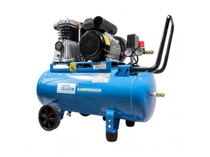 Dvojvalcový kompresor s olejovým mazaním, s remeňovým pohonom. Tlakový spínač, manometer tlaku v nádobe a manometer pracovného tlaku, 2 spojky na stlačený vzduch, redukčný...