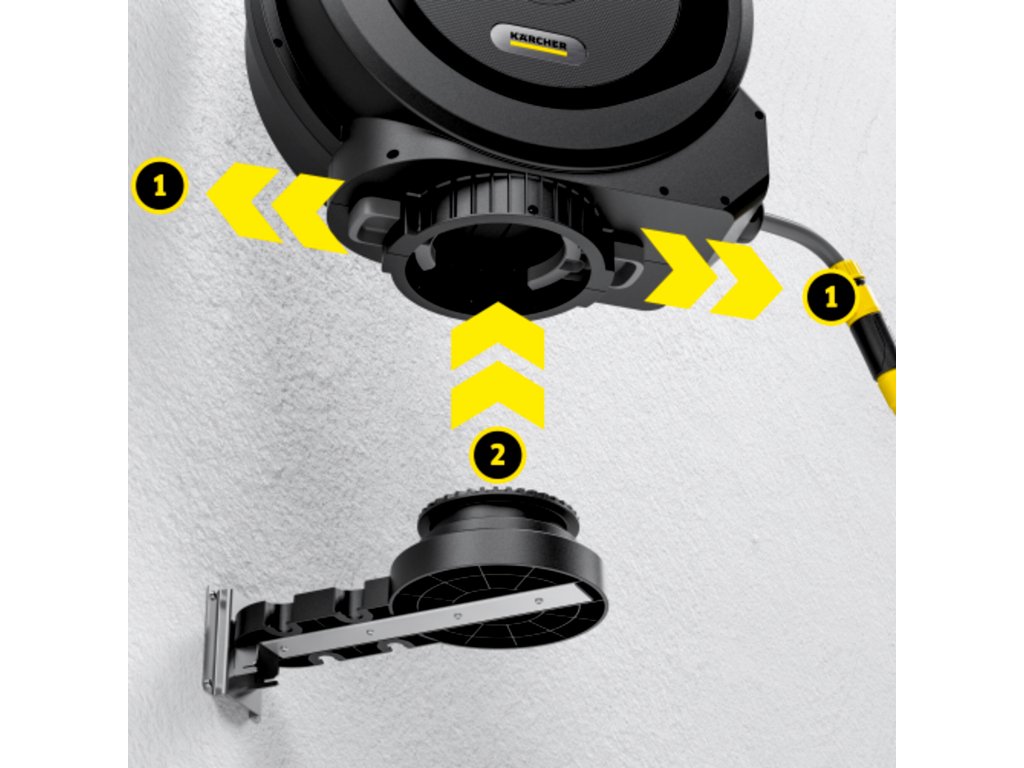 Feature 1 - Benefit 1: | Žiadne skrutky, žiadne náradie, žiadny stres: Vďaka jedinečnému systému Kärcher FlexChange je možné box na hadicu v priebehu niekoľkých sekúnd (napr. v zime) vybrať z nástenného držiaka alebo hrotu hadice. |