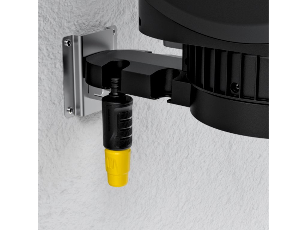 Feature 5 - Benefit 1: | Box na hadicu je namontovaný na nástennom držiaku a dá sa otočiť o viac ako 180°. To umožňuje maximálnu voľnosť pohybu pri polievaní záhrady bez zalomenia hadice. |