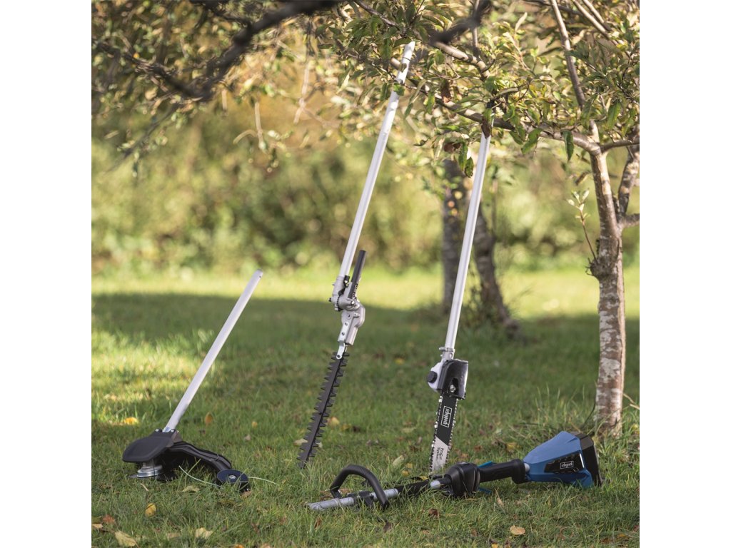 BC-MFH400-X - 2 x 20 V aku multifunkční stroj 4v1 Scheppach BC-MFH400-X zastane práci jako 4 nejoblíbenější zahradní stroje – křovinořez, strunová sekačka, plotostřih a prořezávací pila. Je ideální volbou pro každého, kdo hledá spolehlivý nástroj na komplexní zahradní práce. Vyžínač disponuje strunovou hlavou pro strunu 1,6 mm s funkcí odvíjení a velkým pracovním záběrem 380 mm. Třízubým ocelový kotouč o průměru 255 mm se hodí na sekání přerostlé trávy nebo náletů. Plotostřih má velký dosah, délku lišty 390 mm a nastavitelný úhel hlavy v 11 polohách. Kvalitní nože vyřezávané laserem a broušené diamantem si poradí s větvemi o průměru až 24 mm. Praktická prořezávací pila má délku lišty 254 mm, maximální rychlost řetězu 18 m/s, tři nastavitelné rychlosti (12, 15 a 18 m/s) a automatické mazání řetězu. Díky dlouhému dosahu nemusíte u běžných stromků používat žebřík. Zařízení umožňuje snadnou výměnu nástavců bez použití nářadí a nastavení rychlosti nástrojů prostřednictvím ovládacího panelu blízko rukojeti. Pohodlí při práci zajišťuje ergonomický popruh přes rameno s rychloupínacím mechanismem, který snižuje únavu i při delším použití. Stroj se dodává bez baterie a nabíječky. Konstrukce Moderní bezuhlíkový motor (Brushless motor) nabízí vysokou účinnost, delší výdrž baterie, dlouhou životnost a minimální opotřebení. Stroj je plně kompatibilní se všemi akumulátory a nabíječkami řady Scheppach IXES 20V, které nabízí maximální flexibilitu a pohodlí bez kabelů. V tomto případě jsou k provozu nutné 2 baterie. Součásti balení: multifunkční stroj BC-MFH400-X strunová hlava pracovní popruh tříramenný žací nůž nástavec pro křovinořez nástavec s plotostřihem nástavec s řetězovou pilou Baterie a nabíječky pro 20 V aku systém IXES Jednotlivé stroje 20V aku systému Sheppach 20V IXES se dodávají bez baterie a nabíječky. Tyto komponenty se kupují samostatně a to z toho důvodu, abyste ušetřili při nákupu dalšího aku nářadí stejné řady. Na začátku si proto můžete pořídit pouze jednu baterii a nabíječku, se kterými pak budete schopni pohánět libovolný stroj z více než 30 různých modelů nářadí a zahradní techniky systému IXES. Celou nabídku naleznete v záložce Baterie a nabíječky.Dodatočné parametre