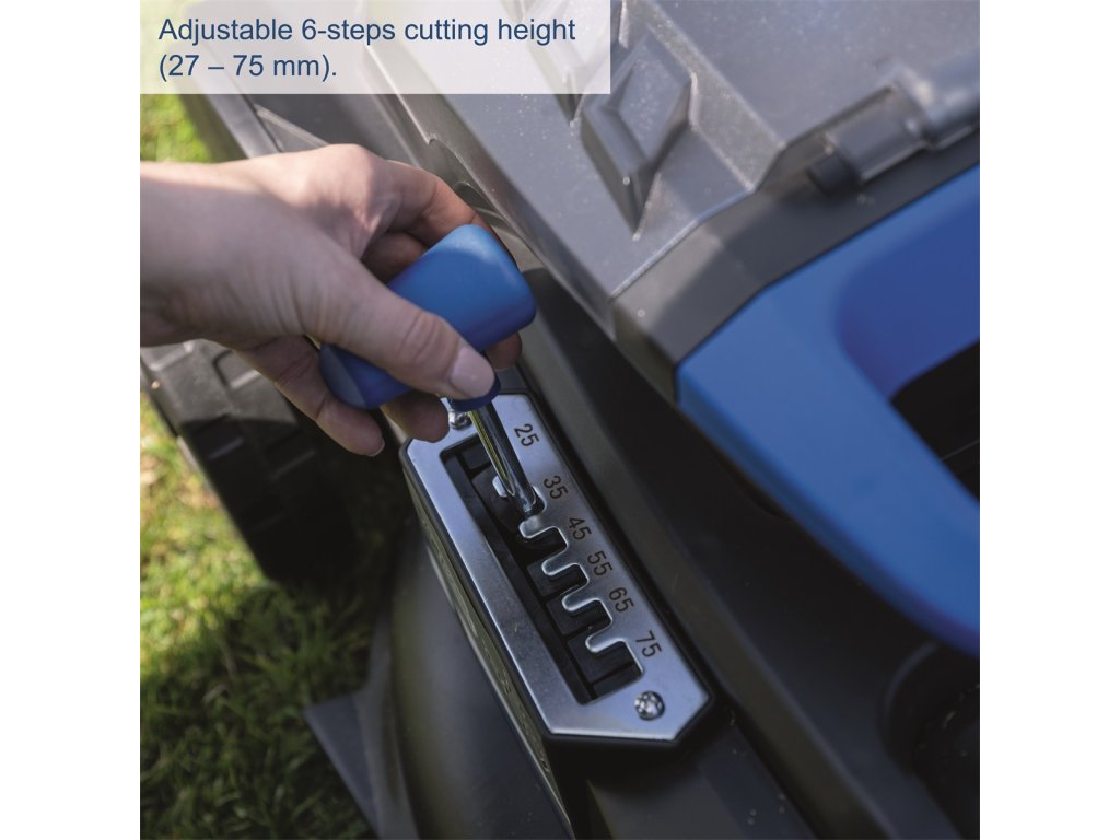 | Nastavenie výšky kosenia: | 6 stupňů, 25-75 mm |