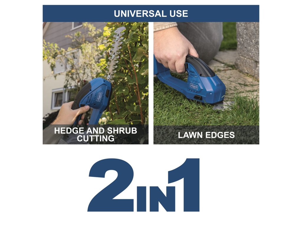 Akumulátorové nožnice Scheppach C-HTGS200-X kombinujú dve funkcie v jednom kompaktnom tele. S lištou na trávu (šírka 100 mm) hravo začistíte okraje trávnika okolo obrubníkov, zatiaľ čo lišta na kríky (dĺžka 200 mm) je ideálna na tvarovanie živých plotov a okrasných drevín. Systém 20V IXES zaručuje, že stroj je vždy pripravený na prácu bez nutnosti riešiť benzín alebo elektrické káble.