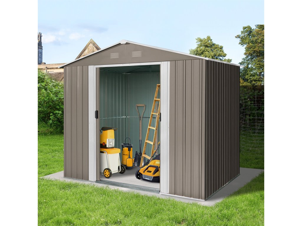 zahradní domek kovový 2,4 x 1,7 m se sedlovou střechou hnědý Riwall PRO RMSA 6x8 Brown