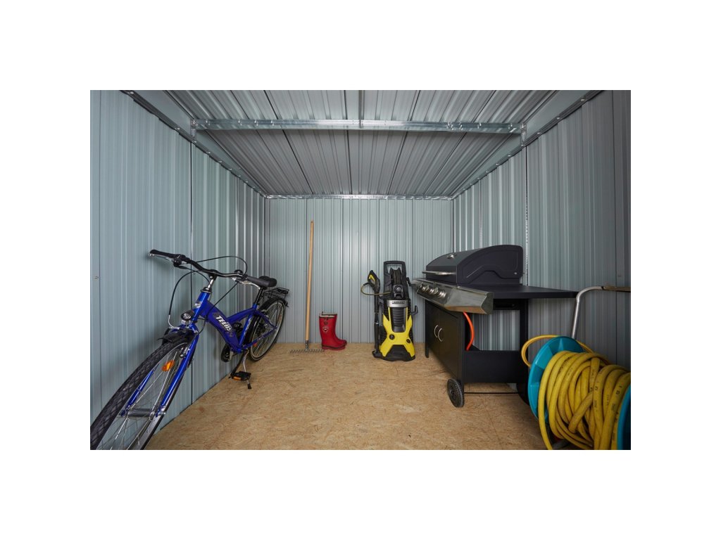 Materiál/barva: kov, antracit Rozměry (d/š/v): 279 x 238 x 202 cm Plocha domku: 267 x 224 cm Rozměr dveří (v/š): 173 x 103 cm Dveře: dvojité, posuvné Skladovací objem: 10,7 m3 Antikorozní ochrana: žárové pozinkování Barva: vypalovací prášková barva Tloušťka ocelových panelů: 0,25 mm Tloušťka ocelového rámu: 0,6 mm Tloušťka prosklení: 2 mm čirý polykarbonát s UV ochranou Vyztužená střecha a stěny: ano Systém na odvod vody: ano Zámek dveří: ano luxusní prostorný zahradní domek s rovnou pultovou střechou je ideální pro uskladnění zahradní techniky a nářadí, grilovacích potřeb, zahradního nábytku, sportovního náčiní, hraček atd. vnitřek domku je krásně prosvětlen díky horní části, která je tvořena z průhledných polykarbonátových panelů s kvalitní UV ochranou domek je možno postavit svépomocí (doporučujeme 2 osoby), ideálně na pevný povrch (betonová deska, dlažba apod.) žárové zinkování rámu i profilovaných ocelových plechů spolu s kvalitní ochranou pomocí práškového nátěru jsou zárukou dlouhé životnosti a minimálních nároků na údržbu vyztužení střechy a boků pro zvýšenou odolnost vůči větru i sněhu žlábky na odvod dešťové vody se dvěma vývody široké dvoudílné posuvné dveře s petlicí je možné bezpečně uzamknout pomocí standardně dodávaného zámku 2 větrací otvory pro dobré proudění vzduchu a ochranu před vlhkostí moderní vzhled a elegantně působící barevná kombinace světlé s oblíbenou antracitovou barvou Případné bezpečnostní pokyny, výstrahy a upozornění jsou součástí návodu k obsluze, který je k dispozici v sekci KE STAŽENÍ. Kontaktní údaje výrobce / dovozce / zplnomocněného zástupce výrobce v EU: GARLAND distributor, s.r.o. Šturmova 1307, 50601 Jičín, Czech Republic email: garland@garland.czDodatočné parametre