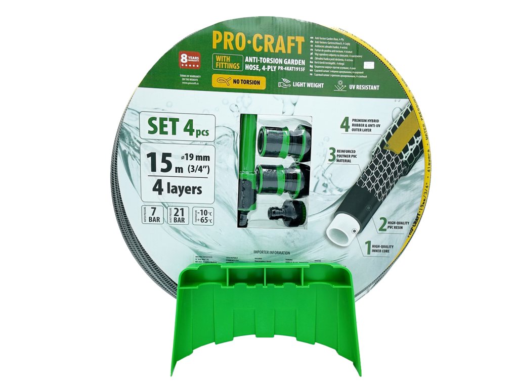 Zahradní hadice Procraft PR-4KAT1915F 4-vrstvá, 3/4" 15 m s příslušenstvím