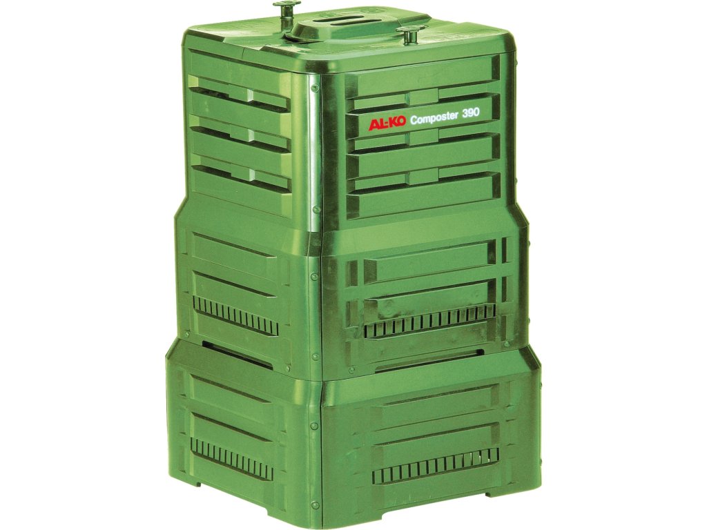 Vaše „čierne zlato“: humus - výsledkom zrýchleného procesu kompostovania je, že z organického odpadu v čo najkratšom čase dostanete cenný humus ako hnojivo pre vašu záhradu v súlade s kolobehom v prírode. Technické detaily kompostéra AL-KO K 390 Kompostér pozostáva z recyklovateľného materiálu s obsahom 390 litrov. 13,2 kg tepelný kompostér má základnú plochu 820x820 mm a výšku 740 mm a má dva plniace otvory a vyberaciu klapku. Kúpiť teraz: Kompostér AL-KO K 390 Stačí si kúpiť kompostér AL-KO K390 priamo od nás ako výrobcu v našom internetovom obchode alebo vyhľadať predajcu vo vašom okolí. K 390 je váš biologický pomocník do záhrady.Termo kompostér vyrobený z recyklovaného materiáluOptimálna cirkulácia vzduchu celoplošnými ventilačnými otvormi pre rýchly proces kompostovaniaNezaberie veľa miesta pri preprave, pretože ho možno kompletne demontovať - jednoduchá a rýchla montážDva plniace otvory navrchu a vyberateľné dvierka v dolnej častiDodatočné parametre