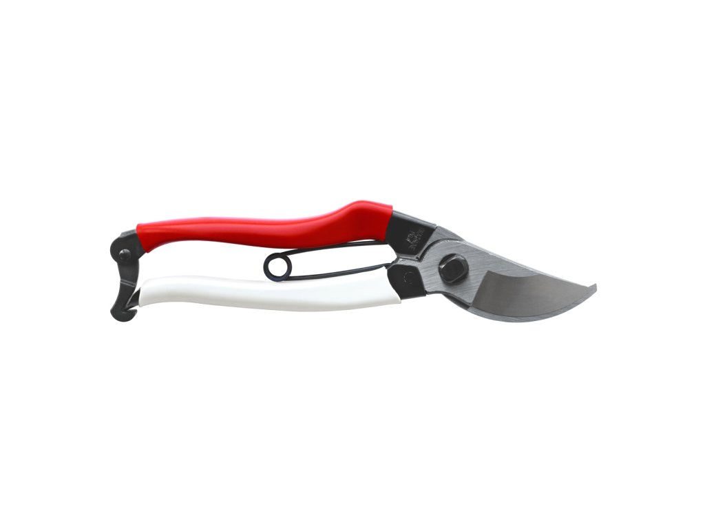 Model Okatsune 103 je kompaktní typ profesionálních jednočepelových zahradních nůžek (tzv. bypass/secateurs), které jsou svojí velikostí ideální pro uživatele s velkýma rukama. Díky dvěma prohnutým protichůdným čepelím dosahují nůžky hladkého a čistého řezu bez poškození okolní rostlinné tkáně. Tyto zahradní nůžky se využívají především ke stříhání měkkého rostlinného materiálu a čerstvého dřeva do průměru až 25 mm. Ergonomická rukojeť a jednoduchý funkční zámek, který lze ovládat jednou rukou, či případně sklopit dovnitř během používání, zajišťují pohodlné a bezpečné ovládání nástroje. Kombinace nízké hmotnosti, pevnosti a snadné údržby dělá z těchto nůžek oblíbený nástroj i profesionálních Japonských zahradníků. Osvědčená japonská technologie Čepel nůžek Okatsune je vyrobena z výjimečně kvalitní japonské oceli Izumo Yasugi, která je proslulá vysokým obsahem uhlíku. Pomocí unikátní technologie kalení a temperování dosahuje tvrdosti 60–61 HRC podle Rockwellovy stupnice, což je úroveň srovnatelná se samurajskými meči. Díky tomu si čepel dlouho zachovává ostrost, vyžaduje jen minimální údržbu a při střihu vynakládáte minimum energie. Kromě tvrdosti se materiál vyznačuje i speciální pružností – čepele tak po každém střihu zůstávají perfektně vyrovnané, i při dlouhodobém používání. Dvojité úhly broušení zajišťují hladký střih bez drcení dřeva a minimální poškození rostlin. Všechny součásti jsou pak sestaveny tak, aby byly nůžky maximálně funkční, jednoduché a zároveň dlouhodobě spolehlivé. Rukojeti nůžek již tradičně nesou v nádechu červené a bílé barvy. Tato kombinace je nejen snadno rozpoznatelná na zahradě, ale v Japonsku, zemi vycházejícího slunce, také symbolizuje „štěstí“. Více než 80 let dokonalého řemesla Značka Okatsune má kořeny hluboko v japonské tradici. Založena byla mistrem kovářem Tsuneichi Okanem ve 40. letech 20. století. Jeho know-how, které kladlo důraz na preciznost a kvalitu zpracování, se postupně předávalo z generace na generaci a dnes je Okatsune uznávanou značkou nejen v Japonsku, ale i po celém světě. Dnes výroba stále probíhá výhradně v oblasti Izumo – kolébce japonské metalurgie – a to za použití tradičních metod a lokálních surovin, jako je železný písek Izumo iron sand. Každý výrobek prochází ruční kontrolou kvality a nese v sobě stopu poctivého řemesla.Dodatočné parametre