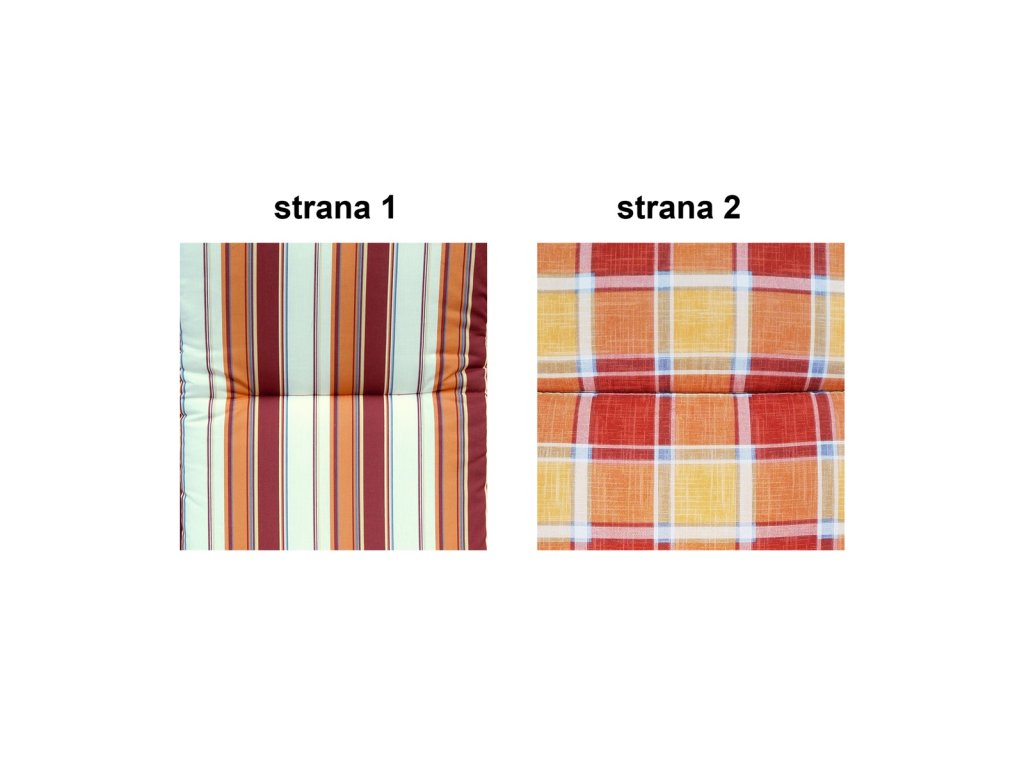 Podsedák Hartman Orange je vyroben z kvalitní bavlny, proto je posed na něm velmi pohodlný. Příjemná barevná kombinace béžové s tmavšími a světlejšími proužky hnědé a oranžové vytváří velmi svěží vzhled, který se hodí jak pro dřevěný zahradní nábytek, tak pro židle z moderních materiálů jako tahokov či lehký hliník. Podsedáky a polstrování jsou vyrobeny špičkovým českým výrobcem Hartman z těch nejkvalitnějších italských látek. Materiál je moderní směs bavlny a polyesteru - tzv. polycotton a proto se na nich nebudete potit ani za velkého horka. Navíc jsou stálobarevné a nemačkavé. Mají hned několik chytrých vychytávek. Vzadu a na bocích jsou opatřeny pásky, kterými je bezpečně uchytíte k nábytku. Vzadu je pásek pružný a proto se natáhne podle potřeby. Mezi sedací a opěrnou částí má sedák několikacentimetrový sklad, kterým můžete korigovat pohodlněji velikost sedacího či opěrného místa. Polstry mají na každé straně lehce odlišný vzor a barevnou kombinaci, takže s jedním polstrem si kupujete dva designové vzory, které můžete měnit či kombinovat dle libosti.Dodatočné parametre