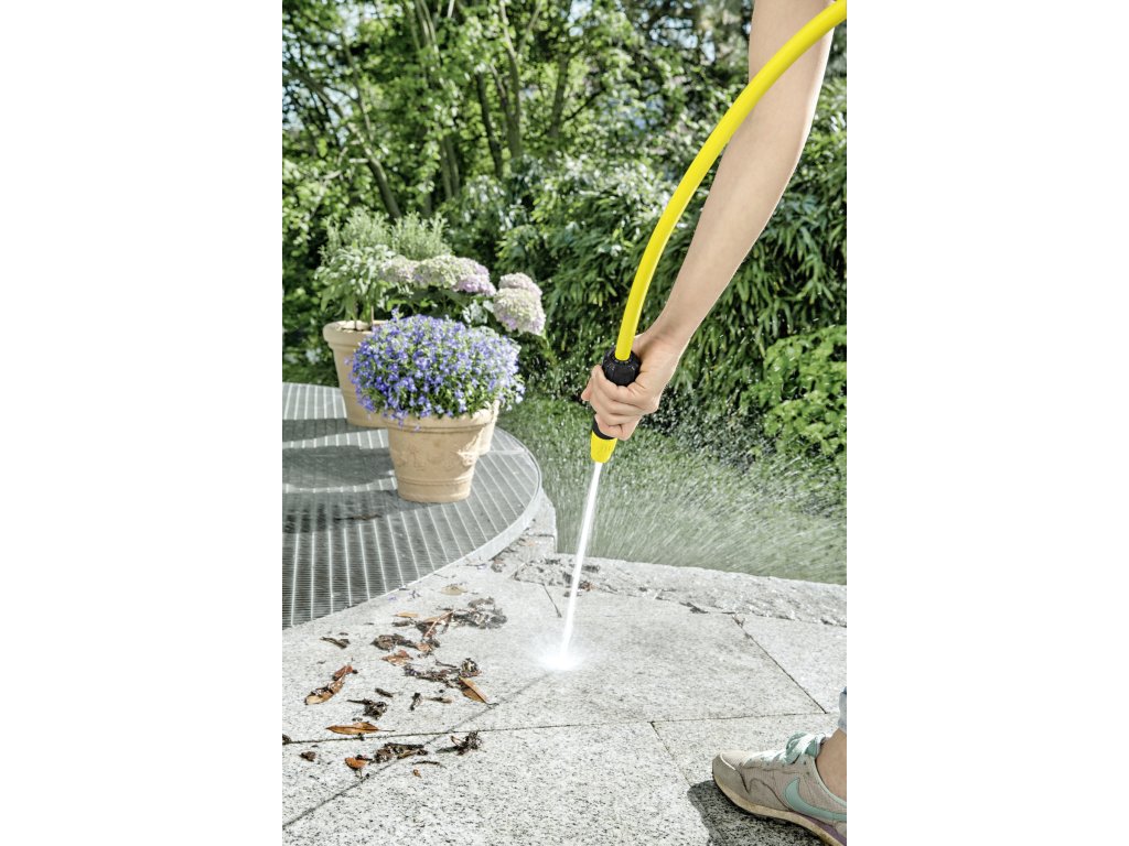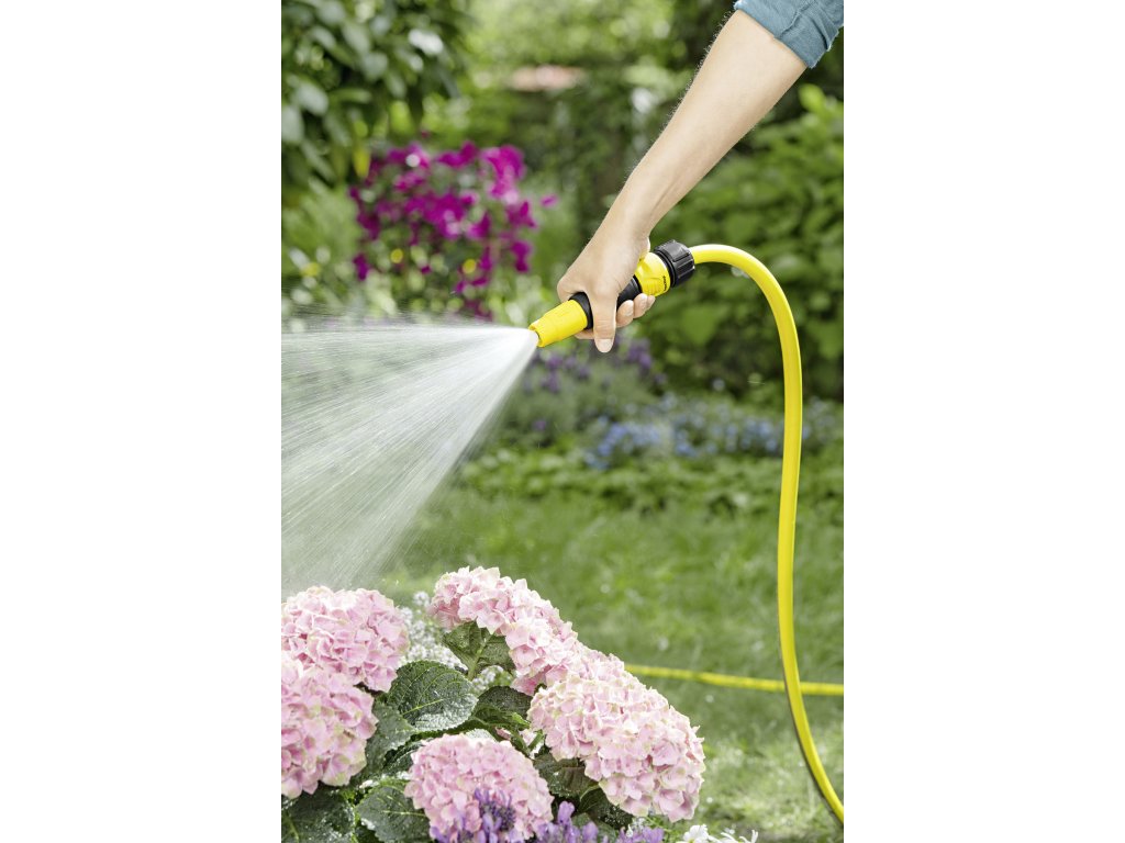 Tento malý postrekovač sa perfektne hodí na jednoduché zavlažovanie v záhrade. Pomocou plynulého prestavovania tvarov prúdu je možné flexibilne a podľa potreby počas polievania striedať kužeľový a bodový tvar rozstrekovaného prúdu vody. Takto jednoducho môžete zavlažovať kvetinové a rastlinné záhony, a súčasne aj oslobodiť terasy a záhradný nábytok od hrubej špiny. Tento základný postrekovač sa tak veľmi dobre hodí na zavlažovanie, ako aj na čistenie. Počas prestávok v polievaní je možné prietok vody jednoducho zatvoriť na striekacej tryske. Mimochodom: Záhradné postrekovače Kärcher sú kompatibilné s všetkými dostupnými klik systémami a dajú sa ľahko napojiť na záhradnú hadicu.
