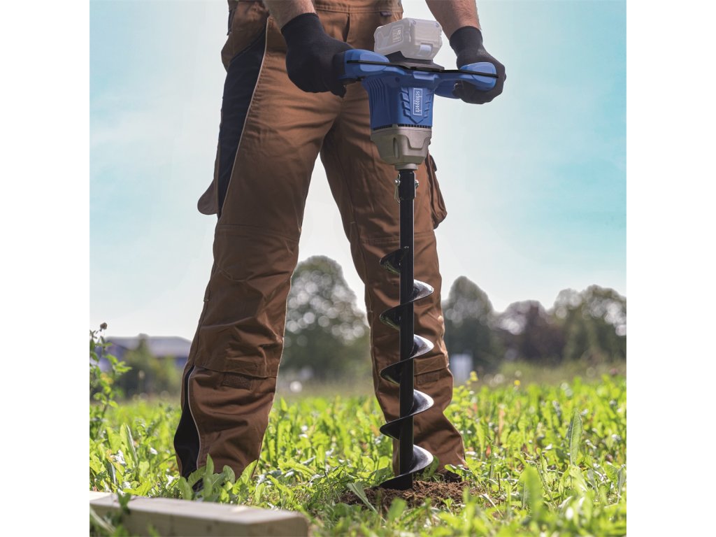 BC-EB100-X - 20 V aku půdní vrták Výkonný akumulátorový zemní vrták Scheppach BC-EB100-X je ideálním pomocníkem při vrtání otvorů pro plotové sloupky, základy nebo výsadbu rostlin, keřů a stromků. Má vysokou rychlost otáček až 125 ot./min, takže si snadno poradí i s náročnějšími úkoly. Díky provozu bez kabelu je práce s vrtákem pohodlná a snadná. Stroj umožňuje rychlou a snadnou výměnu vrtáku bez použití nářadí. Je standardně vybaven vrtákem o průměru 100 mm a délce 800 mm, což z něj činí univerzální nástroj pro různé aplikace. Nabízí tři provozní režimy: Eco pro úsporný chod, Power Mode pro maximální výkon a reverzní chod pro uvolnění vrtáku. Praktická konstrukce s nízkou hmotností a dvěma madly s měkčenou protiskluzovou úpravou zajišťuje pohodlnou manipulaci při každém použití. Stroj se dodává bez baterie a nabíječky. Konstrukce Moderní bezuhlíkový motor (Brushless motor) nabízí vysokou účinnost, delší výdrž baterie, dlouhou životnost a minimální opotřebení. Stroj je plně kompatibilní se všemi akumulátory a nabíječkami řady Scheppach IXES 20V, které nabízí maximální flexibilitu a pohodlí bez kabelů. Součásti balení: stroj BC-EB100-X vrták 100 x 800 mm Baterie a nabíječky pro 20 V aku systém IXES Jednotlivé stroje 20V aku systému Sheppach 20V IXES se dodávají bez baterie a nabíječky. Tyto komponenty se kupují samostatně a to z toho důvodu, abyste ušetřili při nákupu dalšího aku nářadí stejné řady. Na začátku si proto můžete pořídit pouze jednu baterii a nabíječku, se kterými pak budete schopni pohánět libovolný stroj z více než 30 různých modelů nářadí a zahradní techniky systému IXES. Celou nabídku naleznete v záložce Baterie a nabíječky.Dodatočné parametre