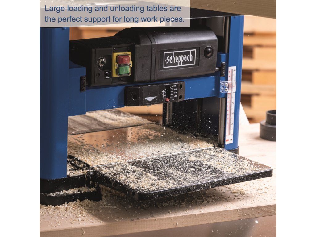 Scheppach PLM 1800 je moderní výkonná protahovačka na dřevo. Chytrý kompaktní design minimalizuje prostorové nároky v dílně a usnadňuje transport stroje. Robustní konstrukce zvládá bez problémů práci s hranoly o šířce až 330 mm a výšce 152 mm. Silný motor 1500 W spolu se dvěma ocelovými noži rotujícími rychlostí 8500 ot./min. se starají o velmi čistý a přesný řez, což v praxi znamená ještě jemnější opracování plochy. O posun dřeva se stará robustní mechanismus s rychlostí pojezdu 7,4 m/min. Nože jdou velice snadno vyměnit a celé ovládání stroje je velmi jednoduché a komfortní. Výšku nastavíte jednoduše pomocí optické stupnice a otočného ovladače na horní straně protahovačky. Na přesnosti opracování se podílí i velmi kvalitní ocelový hoblovací stůl s možností prodloužení. Samozřejmostí jsou i transportní madla a prachuodolný bezpečnostní spínač. Stroj získal mnoho prestižních ocenění, jako například vítěz kategorie nejlepší nákup ve World Tools Awards. Kontaktní údaje výrobce / dovozce / zplnomocněného zástupce výrobce v EU: Scheppach GmbH Günzburger Str. 69, 89335 Ichenhausen, Germany email: service@scheppach.comDodatočné parametre