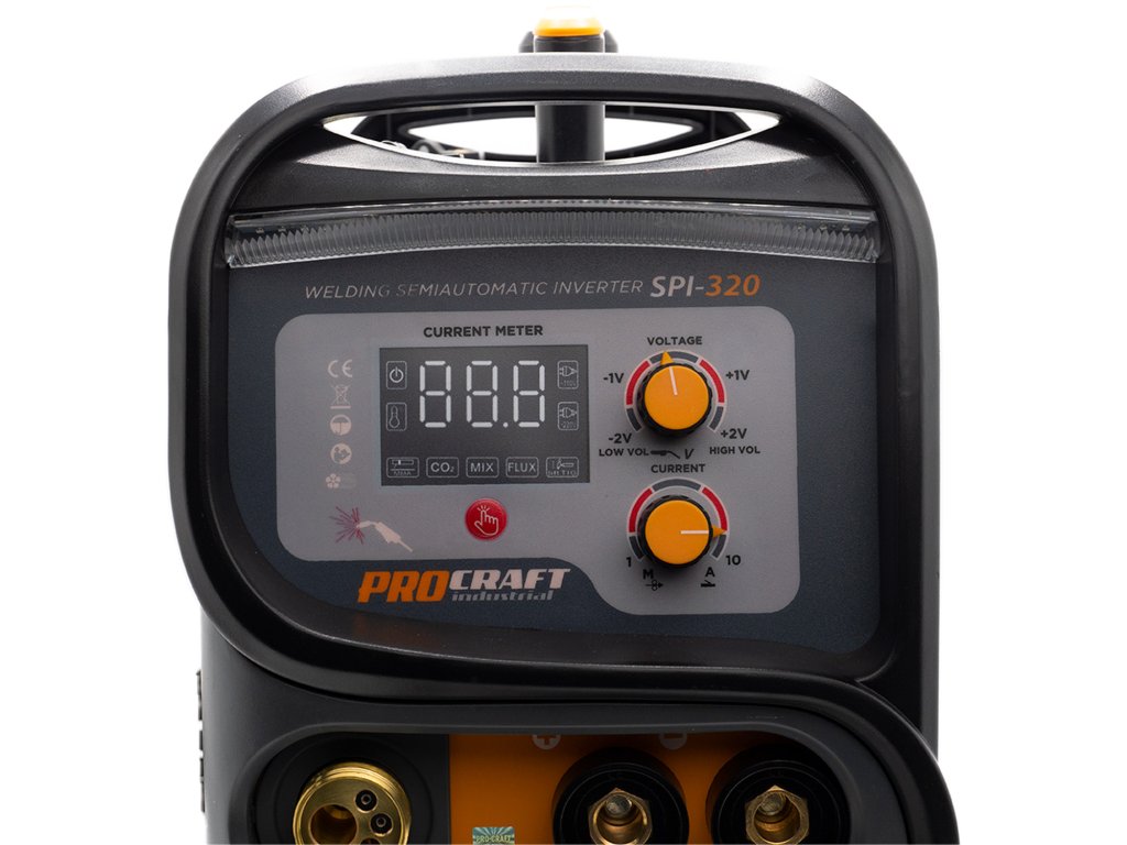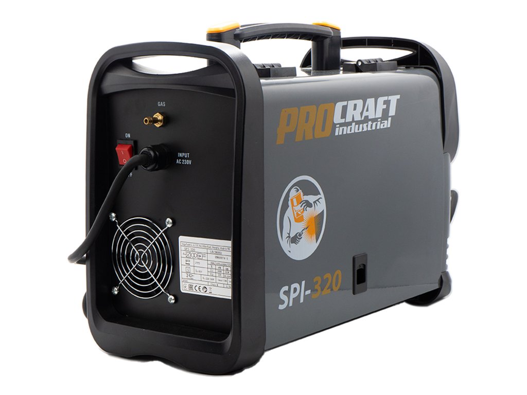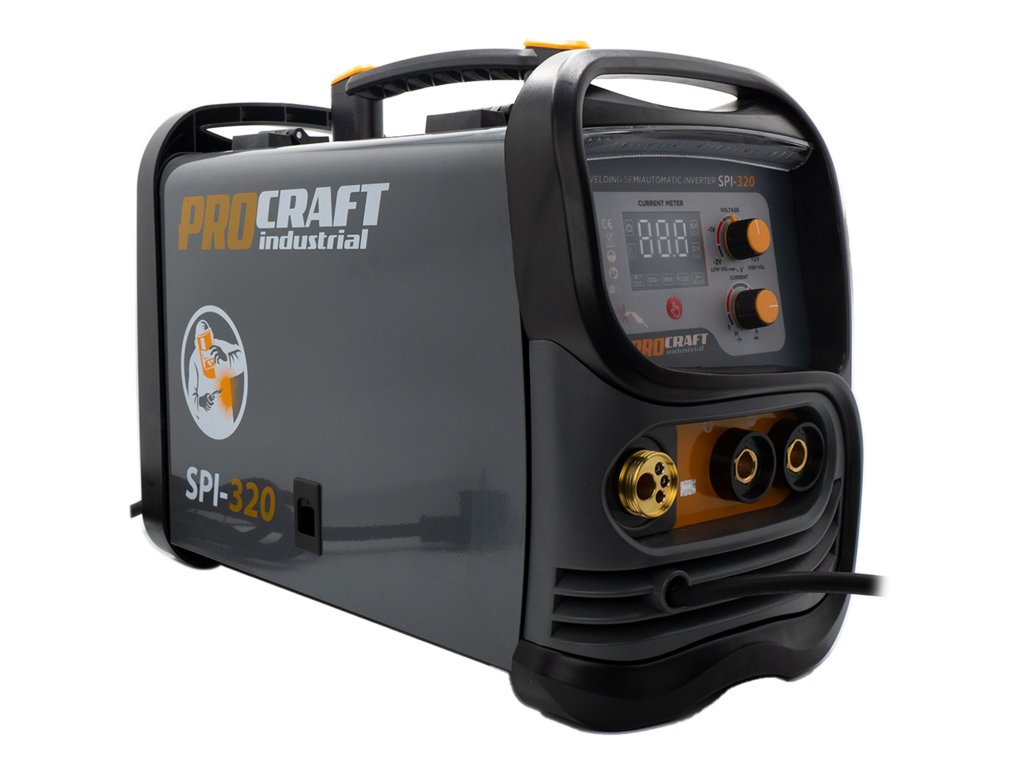 Svářecí invertor Procraft SPI-320 je určen k ručnímu svařování metodami MIG a MAG. Výkonové tranzistory IGBT zaručují dlouhou bezporuchovou práci. Regulace svařovacího proudu v rozsahu 20-160 A umožňuje nastavení optimálních parametrů při práci s různými kovy. Lze použit svařovací drát s průměrem 0,6 až 1,0 mm. umožňuje svařování s inertními nebo aktivními plyny. Pomocí LCD Displeje je zobrazován aktuální svařovací proud. Součástí dodávky je svařovací drát 0,8mm (5 kg buben), MIG hořák s kabelem, svářečský štít, kabel s držákem elektrod, kabel se zemnícími kleštěmi a drátěný kartáč kombinovaný s kladivem na strusku. Balení karton.