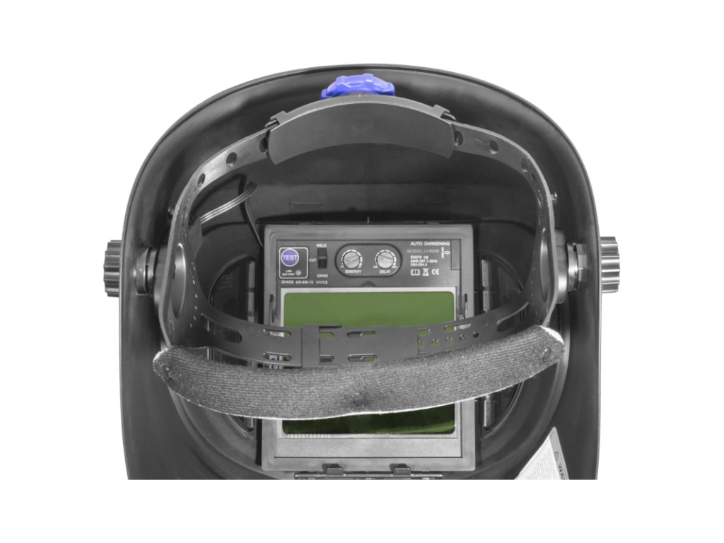 Pevná helma odolná proti nárazu, plynulo nastaviteľný stupeň stmievania 5-9-13, plynulo nastaviteľná citlivosť filtra, nastaviteľná doba oneskorenia, samostmievací filter (100 x 90 mm), solárne nabíjanie + vymeniteľná batéria CR 2450/3V, kontrolná funkcia batérie. Plynulo nastaviteľná výstužná páska na hlavu. Čalúnená páska na čelo, zorný uhol 180° cez bočné okienka, pravé farby (pre lepšiu viditeľnosť, bez farebného tieňovania), prepínateľná na rezné, brúsne a zváračské práce.Ochranné sklo: 379 DINRozmery ochranného skla (DxŠ): 100 x 90 x 1,0 mmZorné pole (DxŠ): 100 x 90 mm + bočné okienkaReakčná doba zosvetlenie/stlmenie: 1/10 000 sReakčná doba stlmenie/zosvetlenie: 0,1 - 0,8 sStupeň ochrany v stmievajúcom stave: DIN 5-9/9-13Stupeň ochrany v rozjasňujúcom stave: DIN 4Rozmery (DxŠxV): 320 x 250 x 240 mmHmotnosť netto/brutto: 0,58 kg/0,97 kgDodatočné parametre