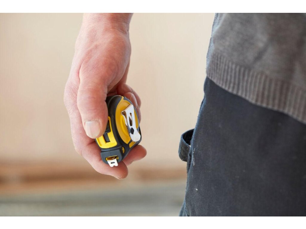 - Vďaka spone na remeň máte zvinovací meter vždy po ruke.
